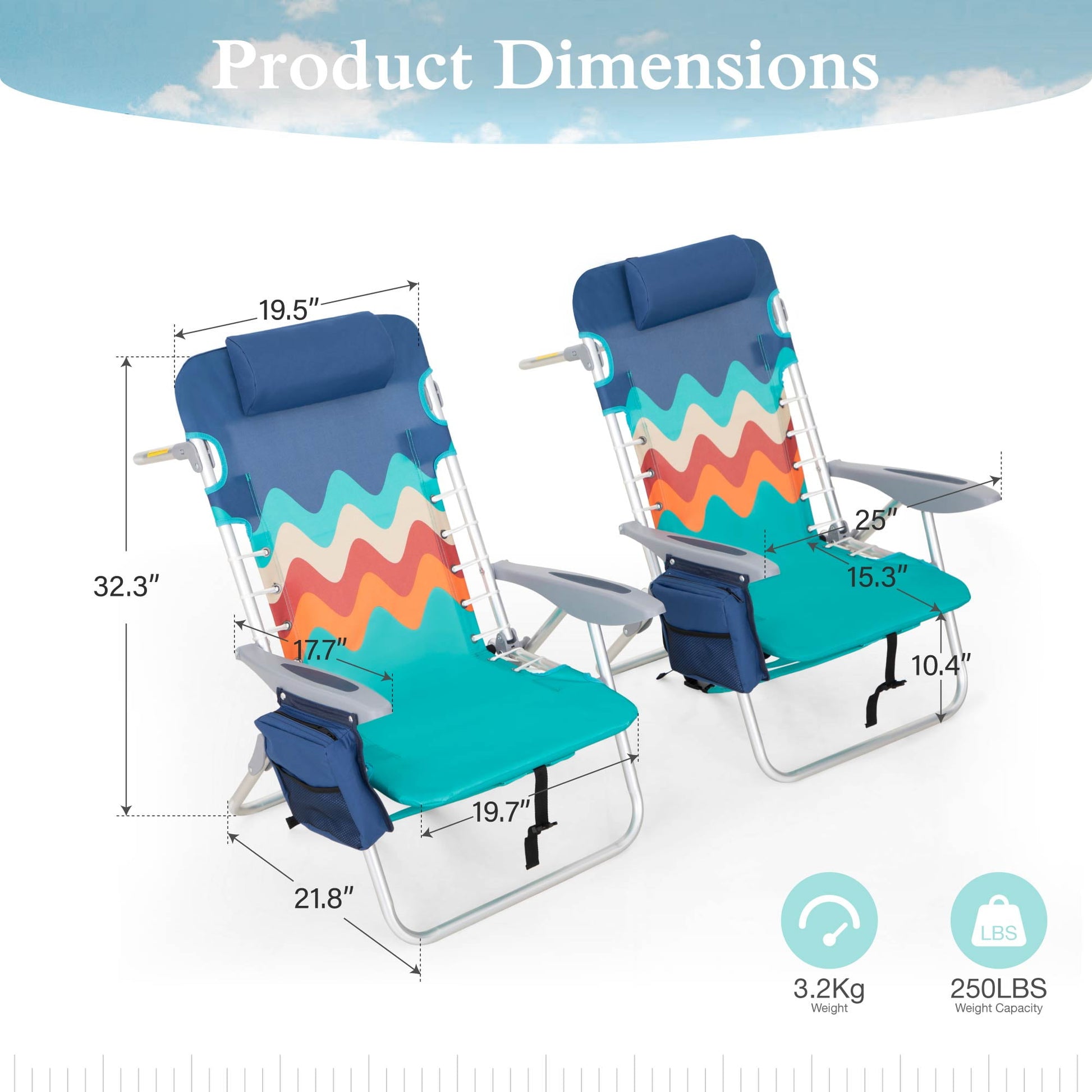 Enhance your outdoor adventures with our premium beach chairs! Designed for all-day relaxation, these chairs offer four adjustable positions and ergonomic support to ensure your comfort. Featuring integrated accessories such as a cooler bag and towel rail, they make your days at the beach effortless. Constructed from durable 600D Oxford fabric and a sturdy 22mm aluminum frame, these chairs are built to endure the sun, sand, and surf while supporting up to 250 lbs each. Whether you¡¯re at the beach, camping, picnicking, or lounging in your backyard, these chairs are the perfect companion for your outdoor experience!