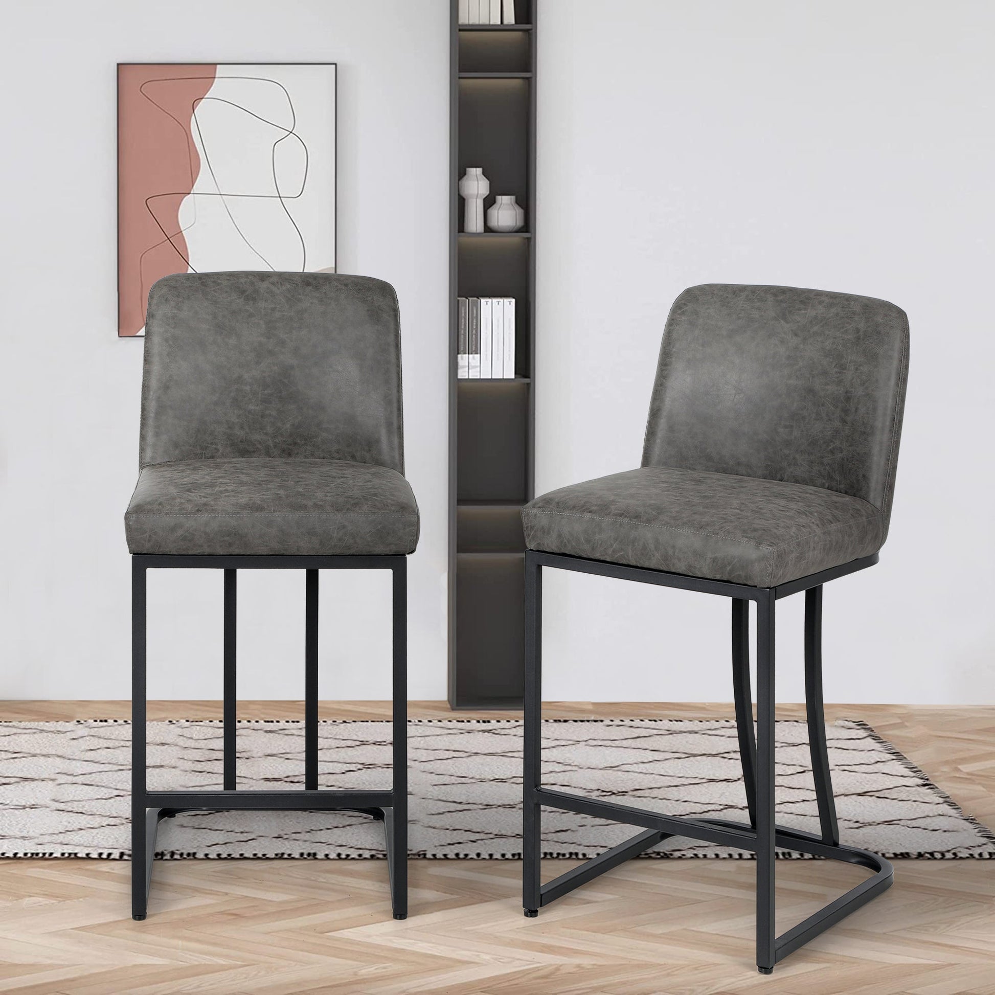 Sophia & William 24" PU Leather Counter Height Bar Stool with Backrest-Set of 2-Gray