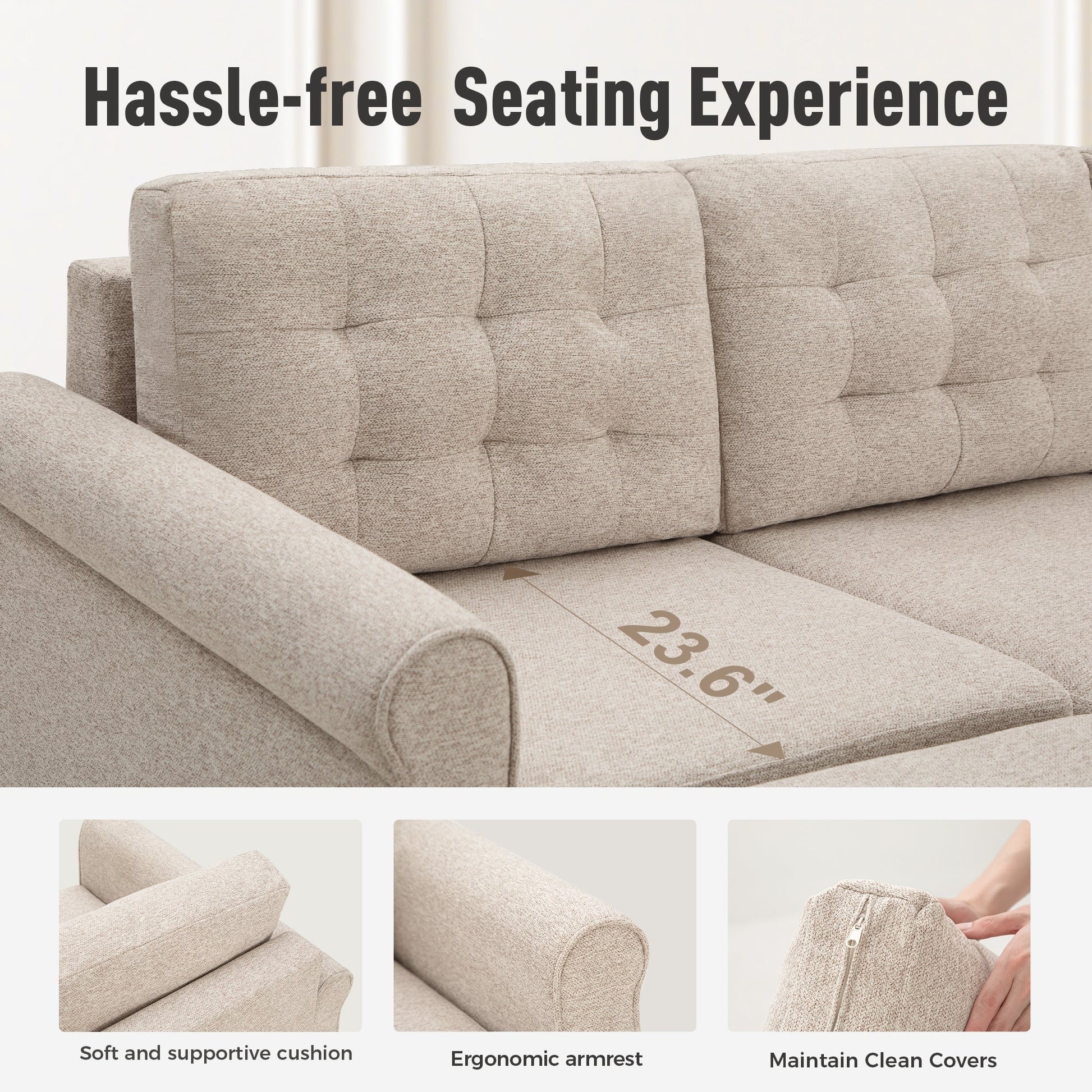 Sophia & William 149.4"L Modular Sectional Sofa with Storage Modern L-shaped Linen Couch with Ottoman & 5.1" Thicken Beige Cushions for Living Room, Bedroom