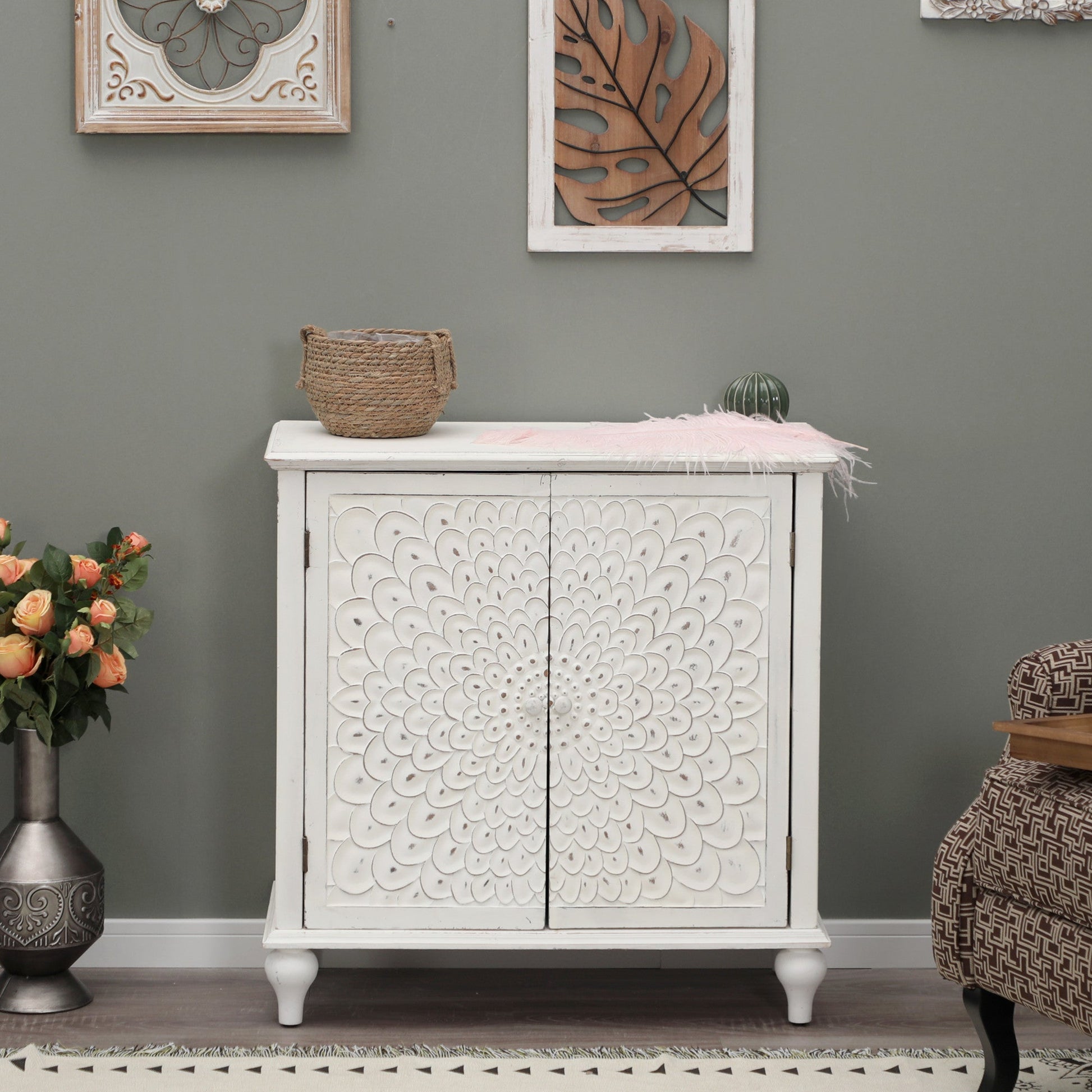 Sophia & William 33" Carved Finch Feather Storage Cabinet with Doors, White