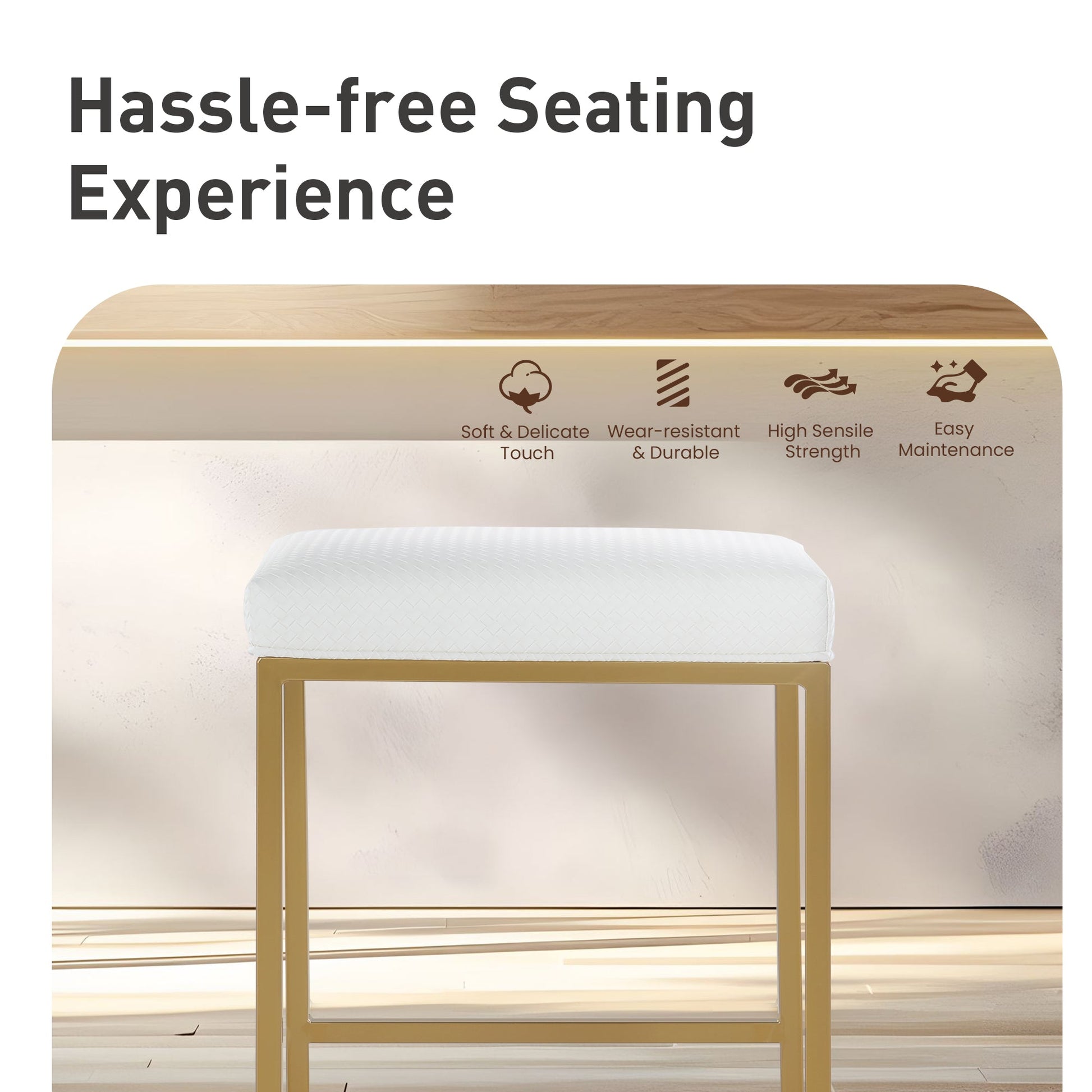 Enjoy lasting comfort with these premium bar stools. Featuring an anti-rust, 3.5"-thick chromed steel frame for rock-solid durability and a high-density padded foam seat offering plush yet supportive comfort for weights up to 330 lbs. Protect your floors with non-slip, scratch-resistant base pads, and experience hassle-free setup with our simple instructions. Their simple, elegant design seamlessly integrates into homes, bars, or offices.