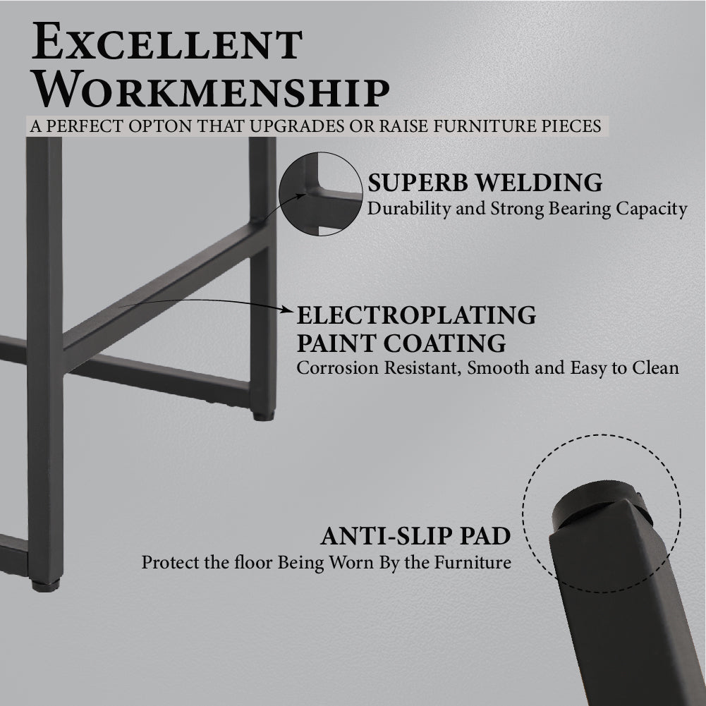 Revitalize your kitchen, bar, or workspace with these ultra-sturdy counter-height stools, expertly crafted for durability and everyday comfort. Built with a matte black powder-coated steel frame and an extended metal base, they deliver unmatched stability for busy restaurants, bustling kitchens, or lively home gatherings. The easy-clean faux leather upholstery wraps a high-density sponge cushion that retains its shape for years, while the skin-friendly surface and ergonomic design ensure all-day comfort. From 34" breakfast bars to 88" pub tables, these stools blend industrial strength with sleek modern style.