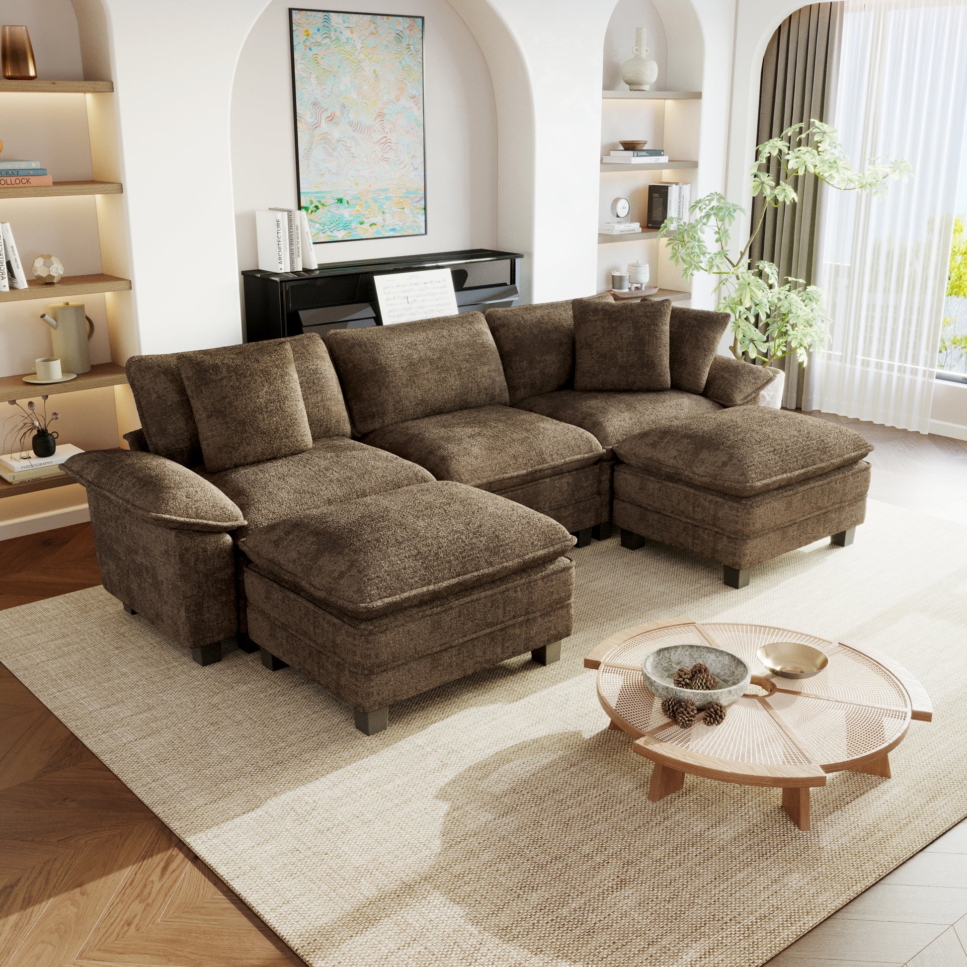 Sophia&William U-Shaped Modular Sectional Sofa Sets for Living Room, Modern 5-Seat Chenille Cloud Couch Oversized Sectional with 3 Throw Pillows & 2 Ottomans, Taupe