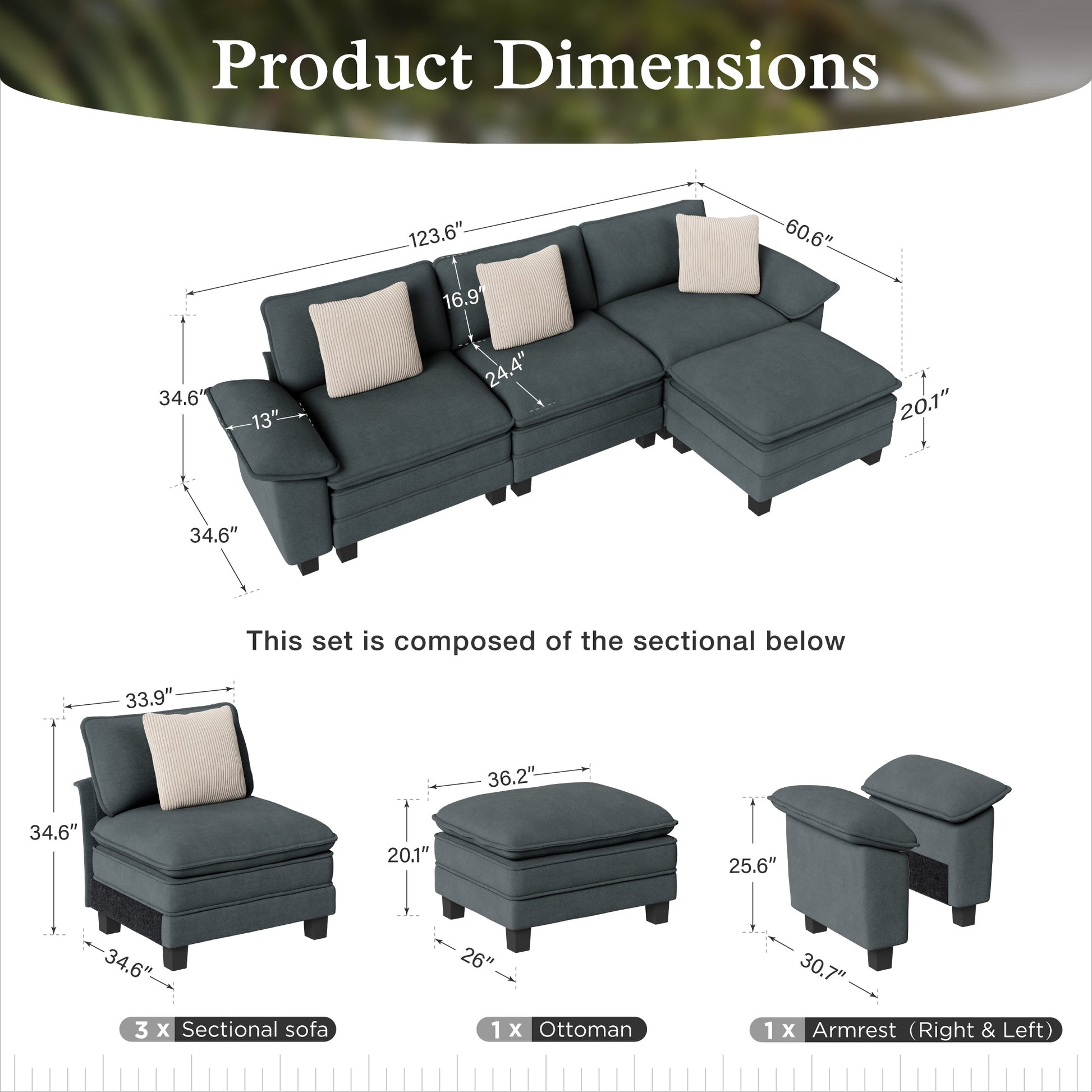 - Pattern: 3 x Sectional Sofa+1 x Armrest (Right & Left)+1x Ottoman