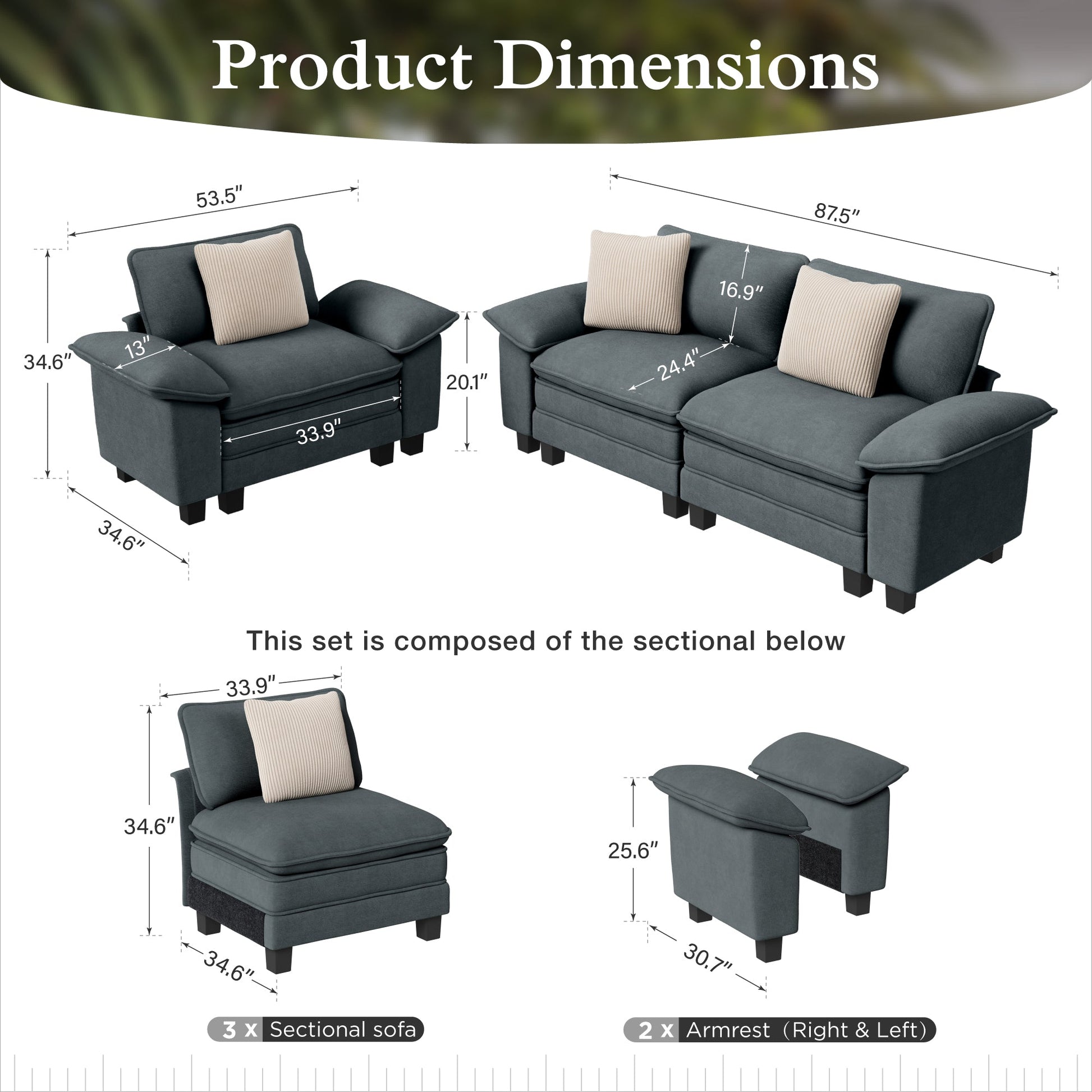 - Pattern: 3x Sectional Sofa+2 x Armrest (Right & Left)