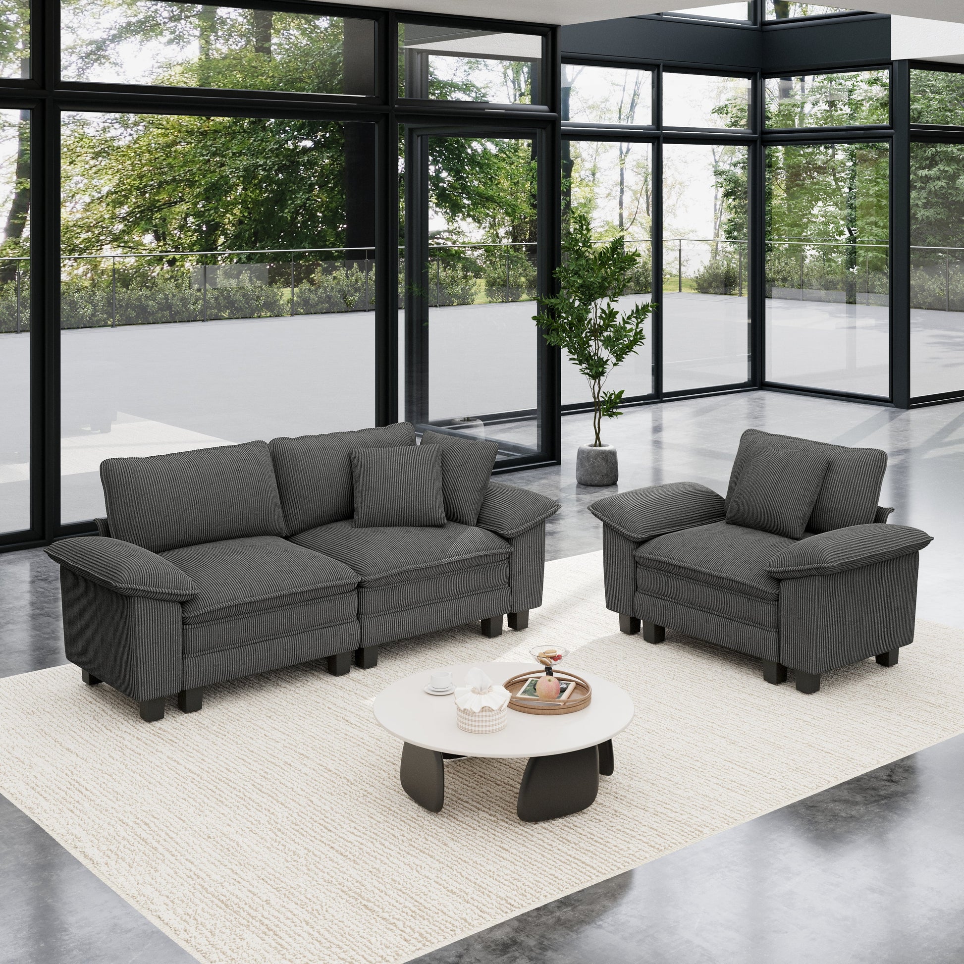 Sophia&William 3-Seat Convertible Sectional Sofa Couch, Modern Corduroy Cloud Couch Modular Sofa Sectional with Pillows for Living Room,Gray