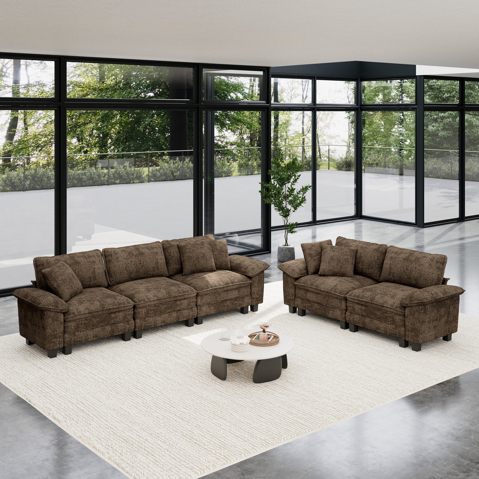 Sophia&William Convertible Sectional Sofa Couch, Modern Chenille Couch 5-Seat Deep Sofa Modular Sectional with 5 Pilliows for Living Room,Brown