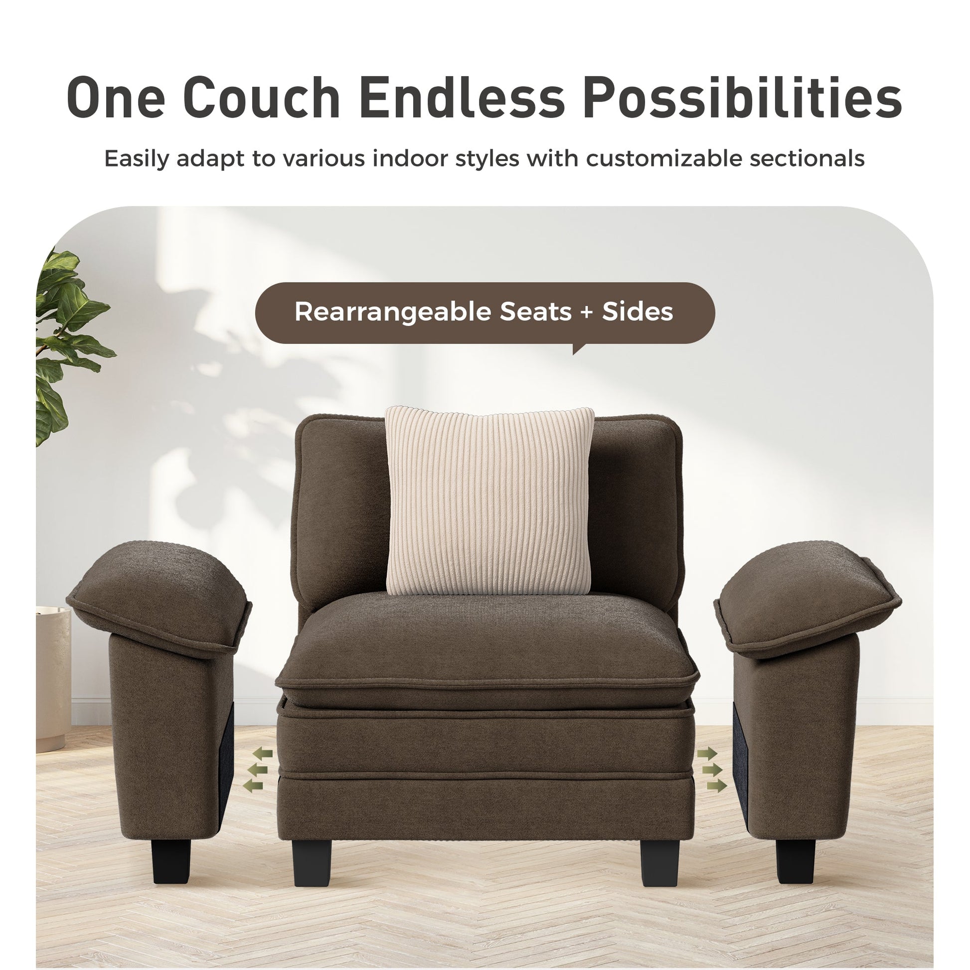 Transform your living space with our Customizable Modular Sofa, designed to blend style, comfort, and durability seamlessly. Whether you’re furnishing a cozy apartment, a spacious family room, or a chic office lounge, this sofa adapts to your needs with limitless configuration options. Crafted for ultimate relaxation, the 13.8-inch dual-layer cushion combines high-density support foam and ultra-soft fluffy filling, creating a "floating on clouds" experience that stays firm for years. Perfect for modern lifestyles, this sofa’s modular design lets you rearrange modules (L-shape, U-shape, sectional, or straight) to match your space and style. Choose from premium fabrics or easy-clean microfiber covers, and enjoy peace of mind with long-lasting use on the frame. Upgrade your home today – where luxury meets practicality!