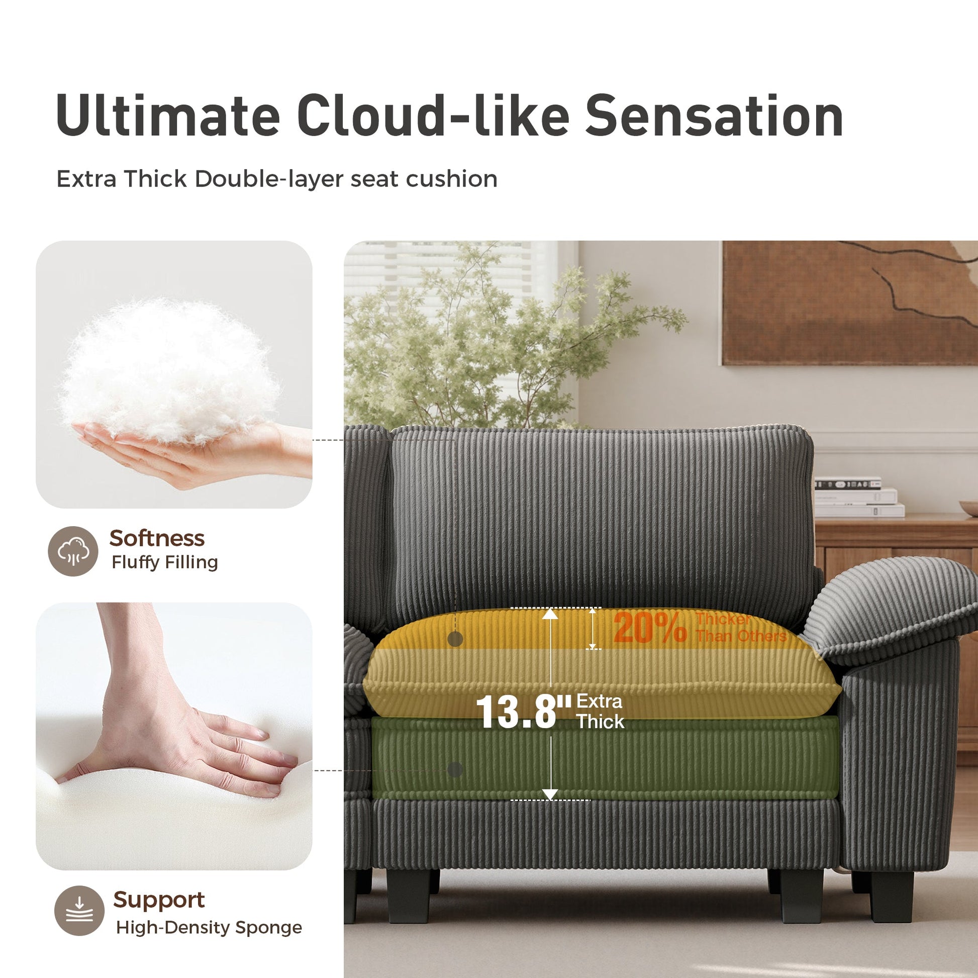 Sophia&William 123.6"L Convertible Sectional Sofa Couch, Modern Corduroy Couch 5-Seat 24.4"W Sofa Sectional with Pillows for Living Room,Gray