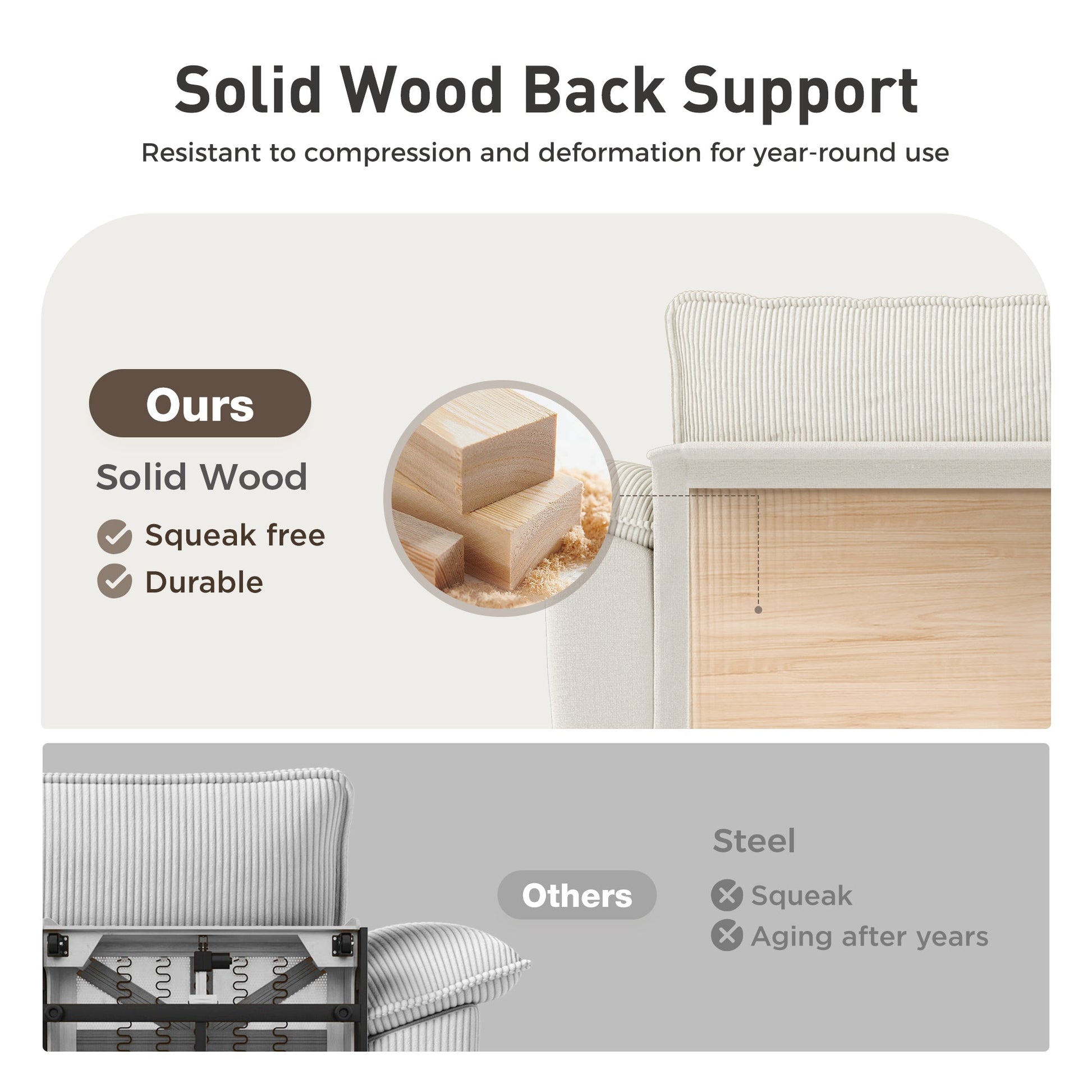 Versatile Style, Limitless Configurations: This sofa effortlessly complements any d¨¦cor from modern to Scandinavian to industrial. Mix and match the modular pieces to create your perfect layout ¨C whether it's L-shape, U-shape, sectional, or straight, the choice is yours! Cloud-Like Comfort: Experience ultimate relaxation with our 13.79" high-density support foam and soft, fluffy filling. Enjoy a weightless feel that remains supportive over time. Ergonomic armrests and detachable back pillows provide extra comfort for lounging. Solid Frame: Built to last, our durable frame resists deformation and supports up to 1,200 lbs, ensuring it stays steady and wobble-free for years. High-Density Sponge Core: Designed to retain its shape even after years of use, this sofa is crafted for long-lasting comfort. Wood Back Support Design: The contoured wood back support cradles your spine, providing lasting comfort throughout the day. Removable, Washable Covers: Cleaning is a breeze with our optional removable covers, making it easy to refresh your space with a quick style update. Anti-Scratch Metal Legs: Our stylish metal legs not only protect your floors but also add a touch of modern elegance. Perfect For: Living Rooms | Home Theaters | Office Lounges | Studio Apartments