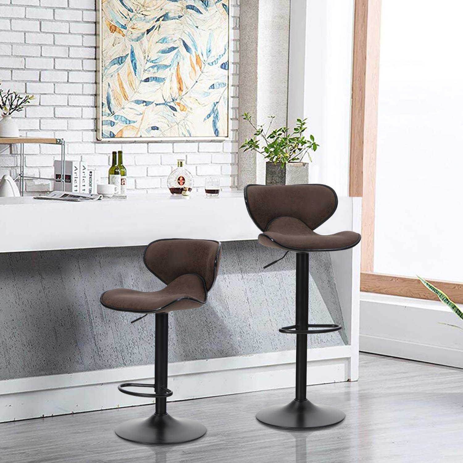 Sophia&William 2 Pieces Adjustable Height Swivel Bar Stools PU Leather Seat,Brown