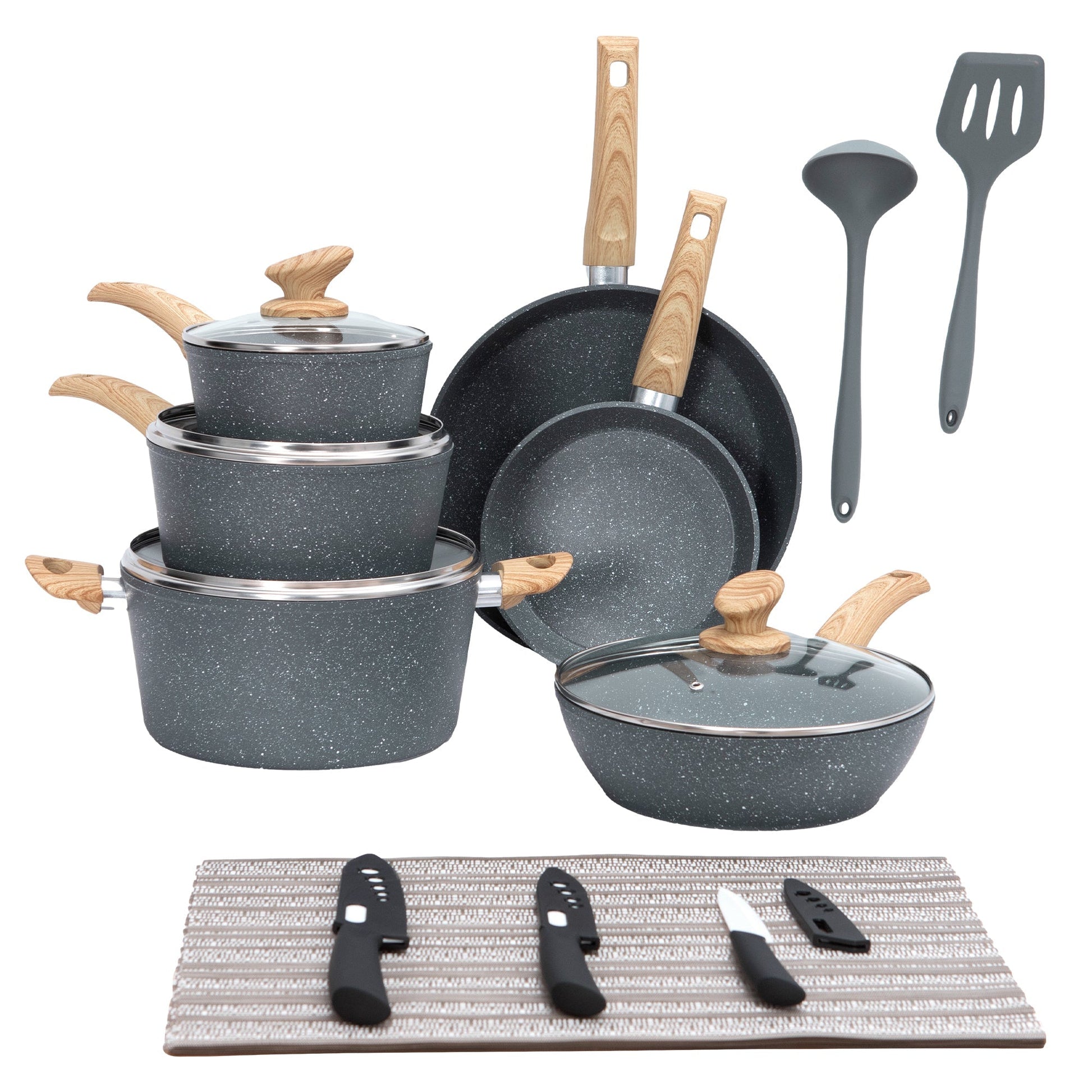 Sophia & William 21 Pieces Granite Non-stick Aluminum Cookware Set with Induction Bottom, Blue Gray