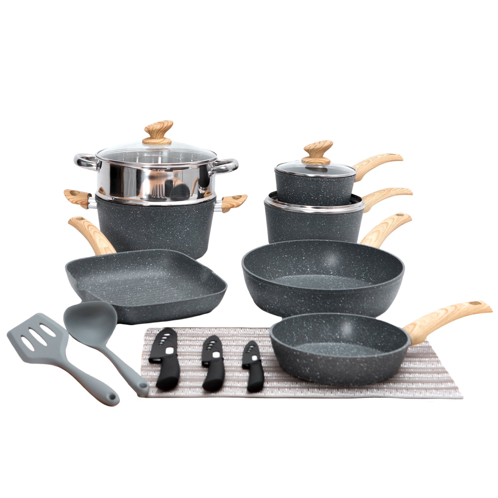 Sophia & William 19 Pieces Cookware Set Granite Non-stick Pots and Pans, Blue Gray