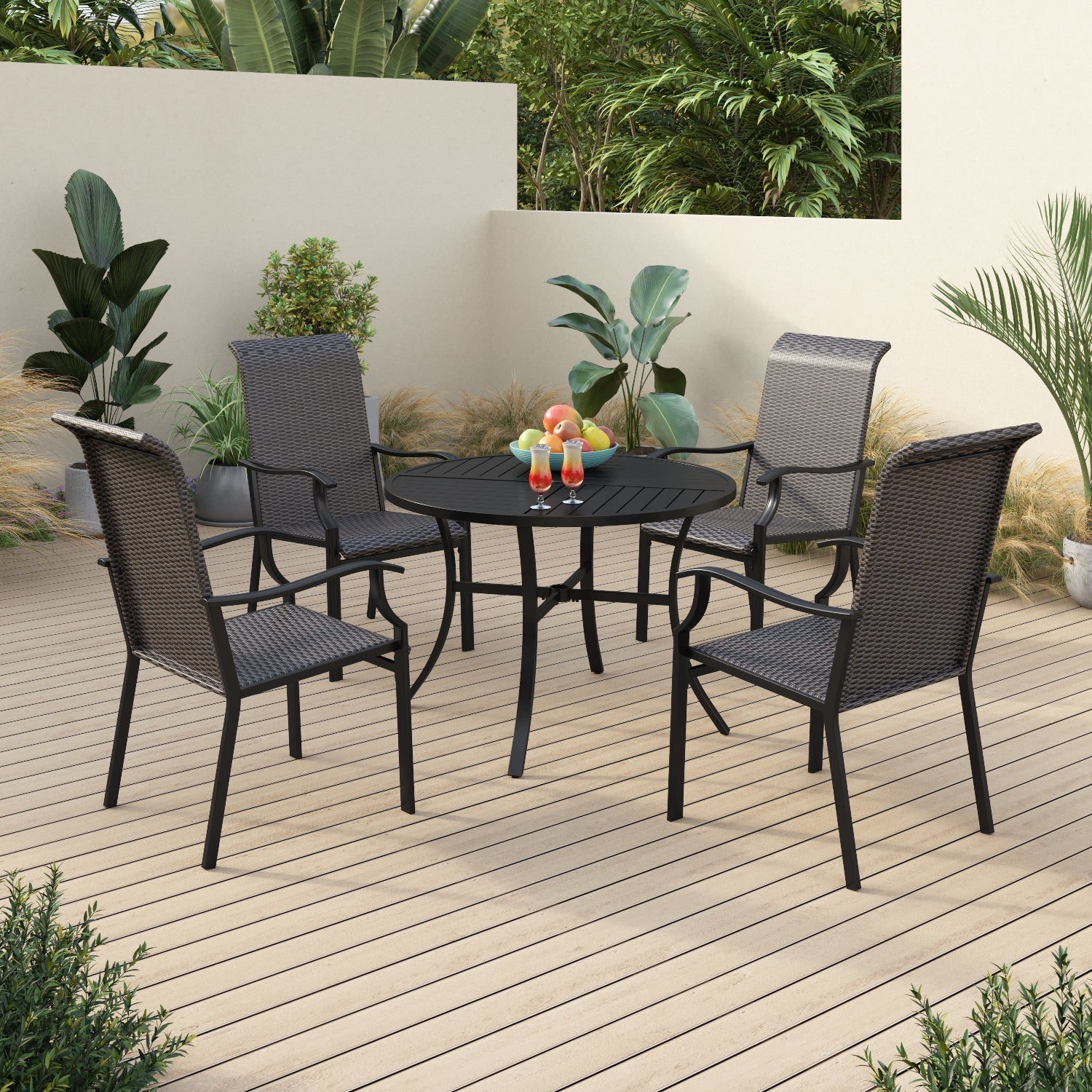 - Patio dining set includes 1pc round table and 4pcs dining chairs