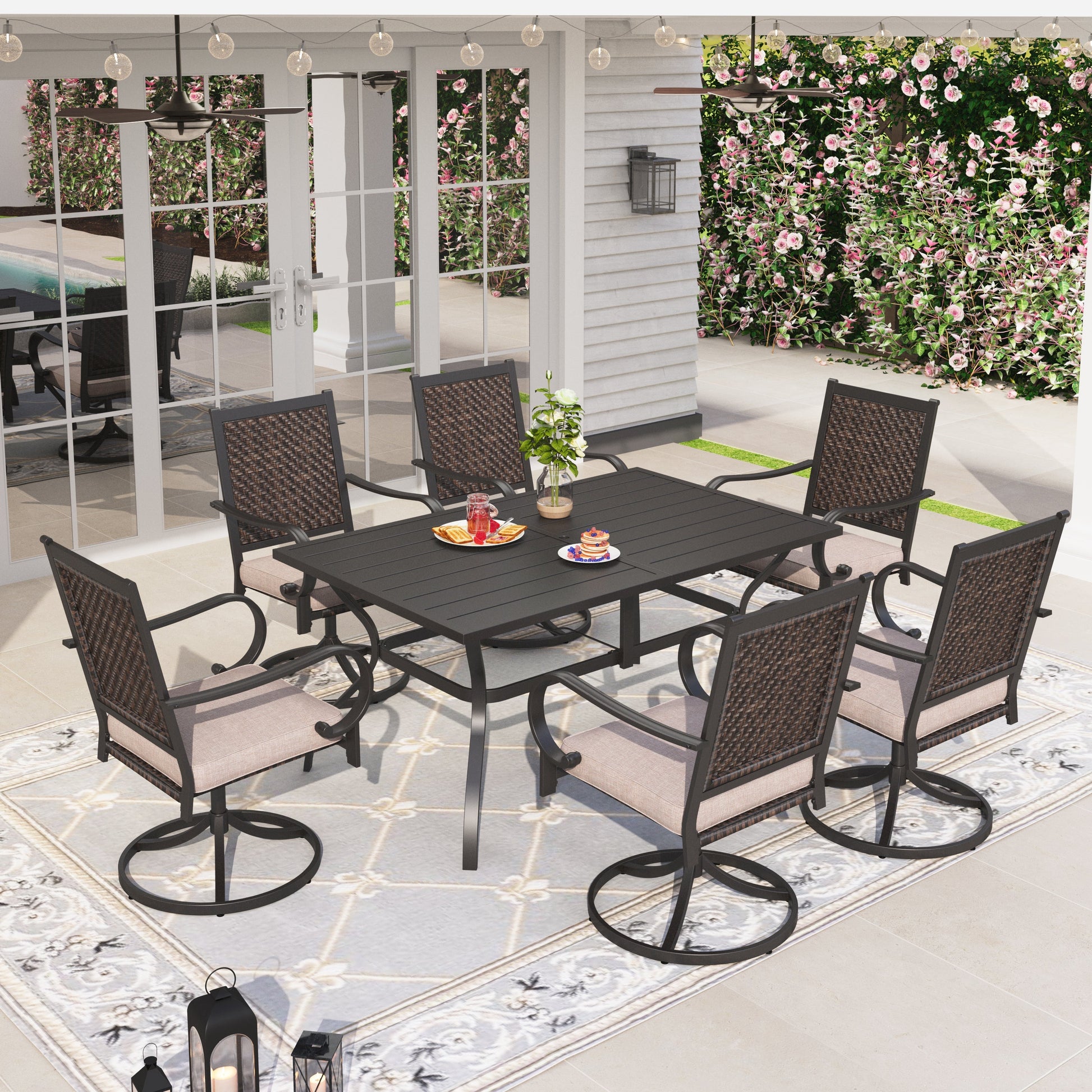 Sophia & William 7 Pieces Outdoor Patio Dining Set Wicker Swivel Chairs and Steel Table