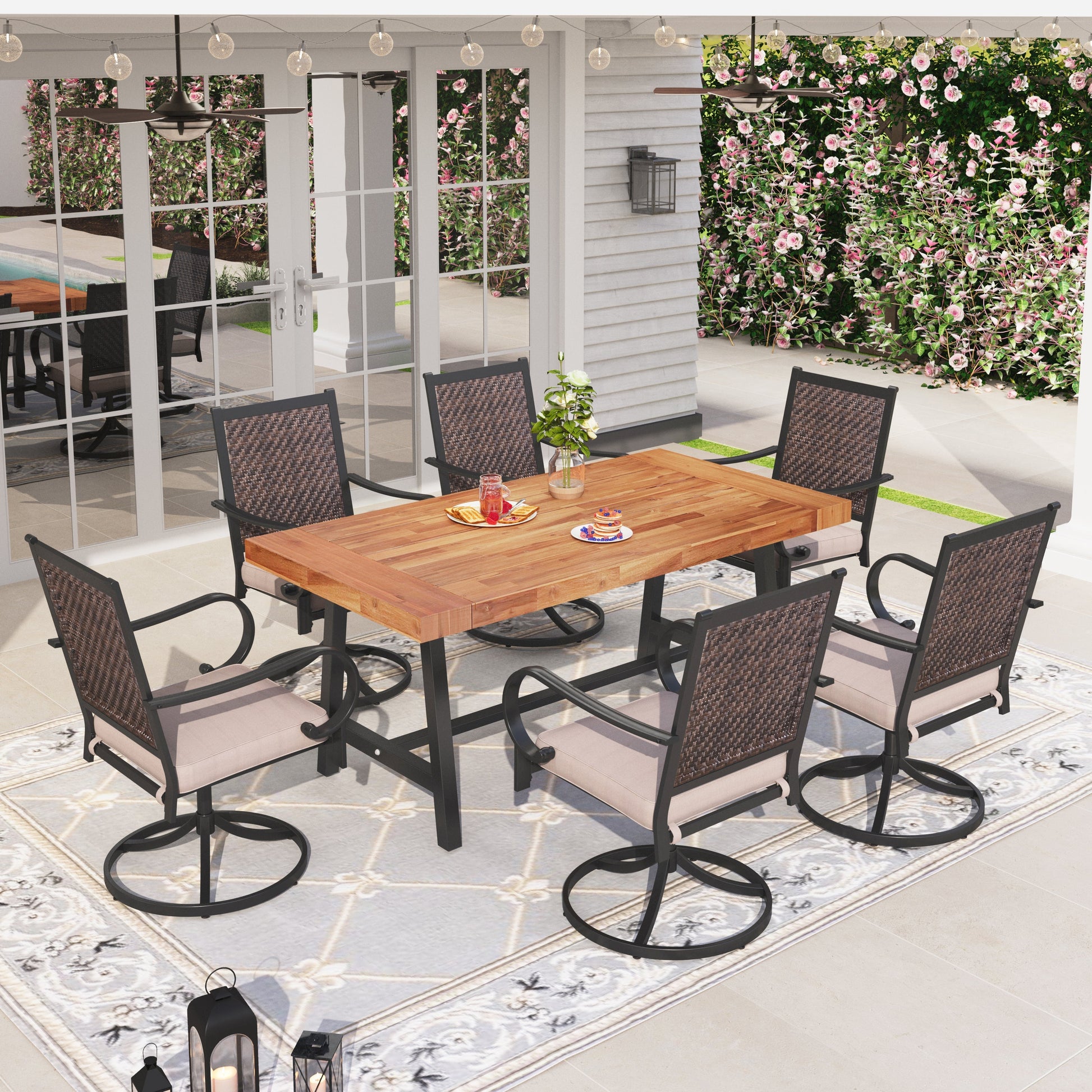 Sophia & William 7 Pieces Outdoor Patio Dining Set Wicker Swivel Chairs and Wood Table