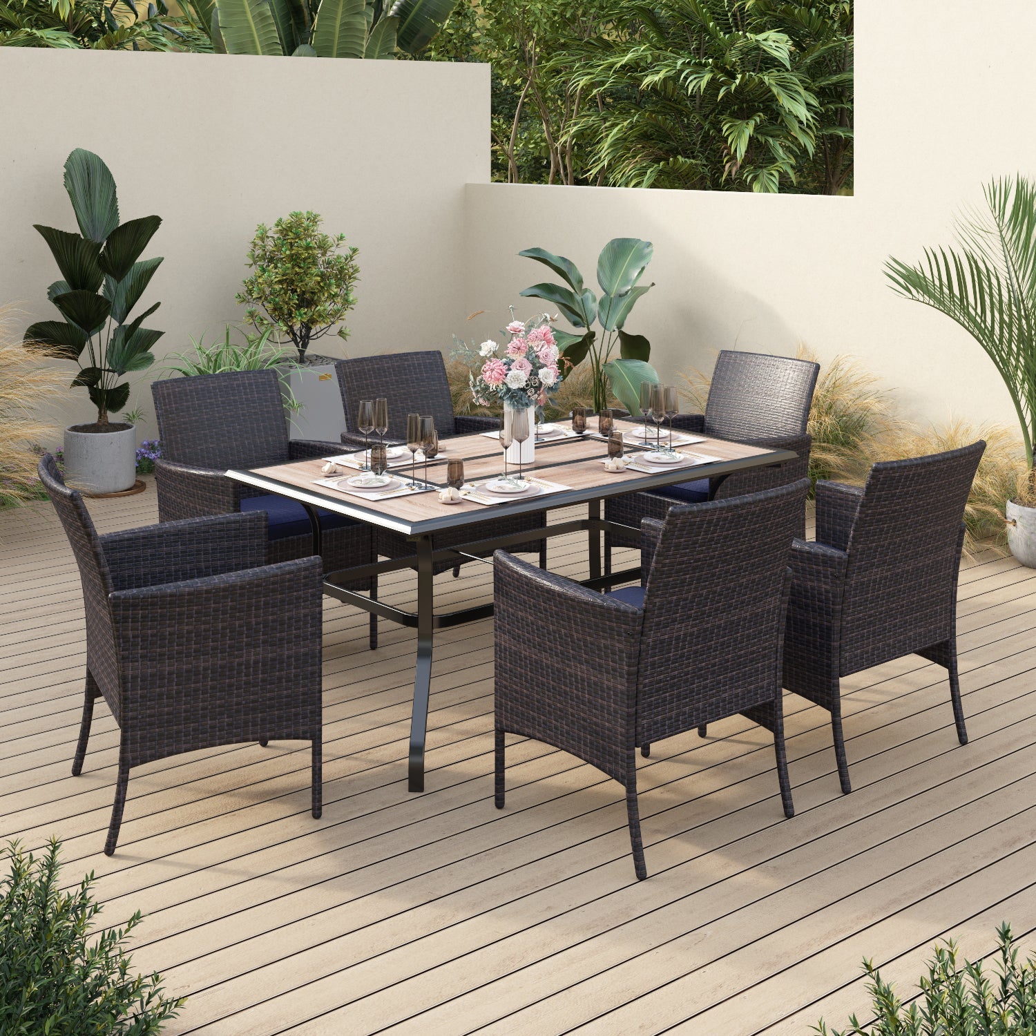 Sophia & William 7 Pieces Outdoor Patio Dining Set, Wicker Dining Chairs and Outdoor Dining Table with PVC Table Top