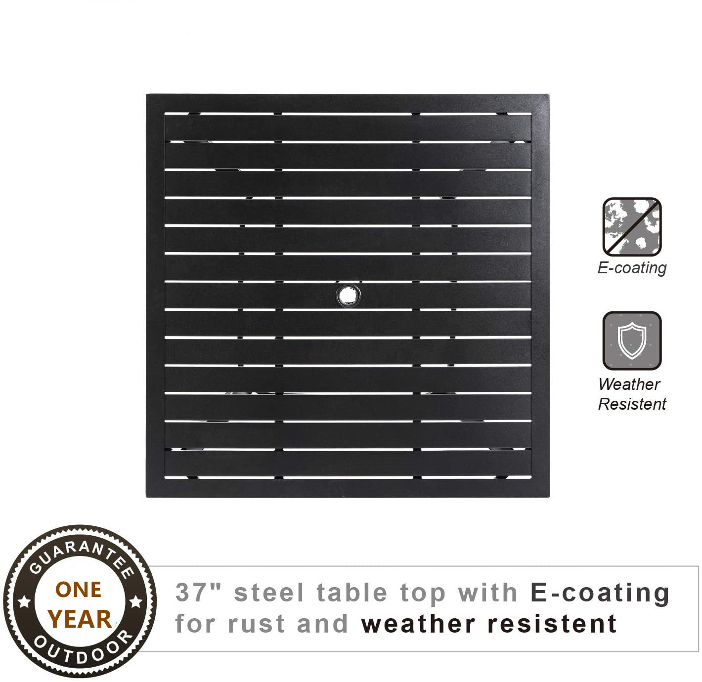 Our Sophia & William outdoor dining set makes your outdoor space fancy and fresh. This dining set includes 1 aluminum square table and 8 textilene chairs, made of high-quality aluminum frame, with anti-rust and weather resistance electronic coating to ensure longer service life, easy clean without special maintenance. This modern furniture set is worth your choice.