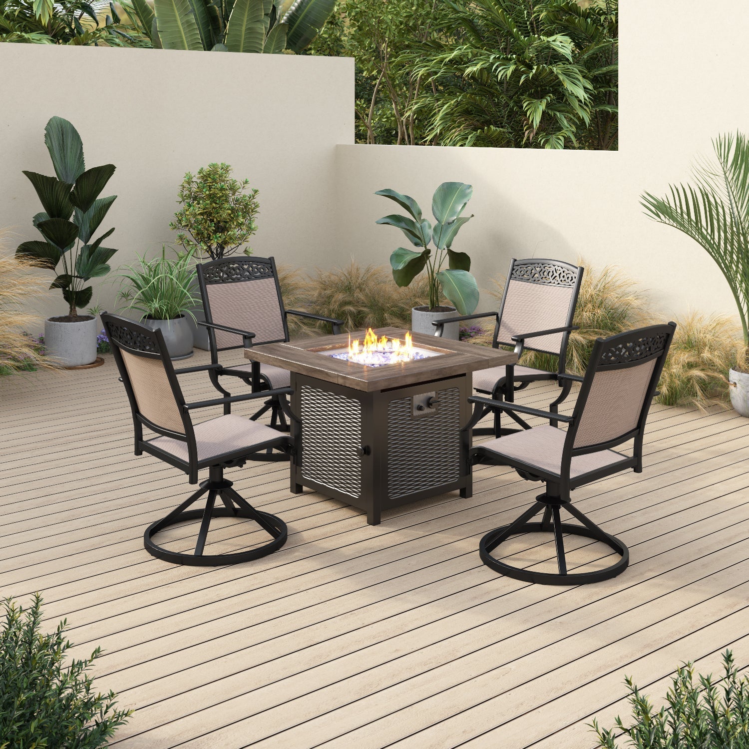 - Patio dining set includes 1pc fire pit table and 4pcs swivel chairs