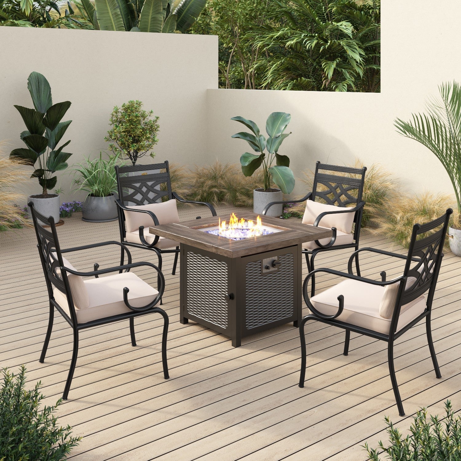 - Patio dining set includes 1pc fire pit table and 4pcs dining chairs