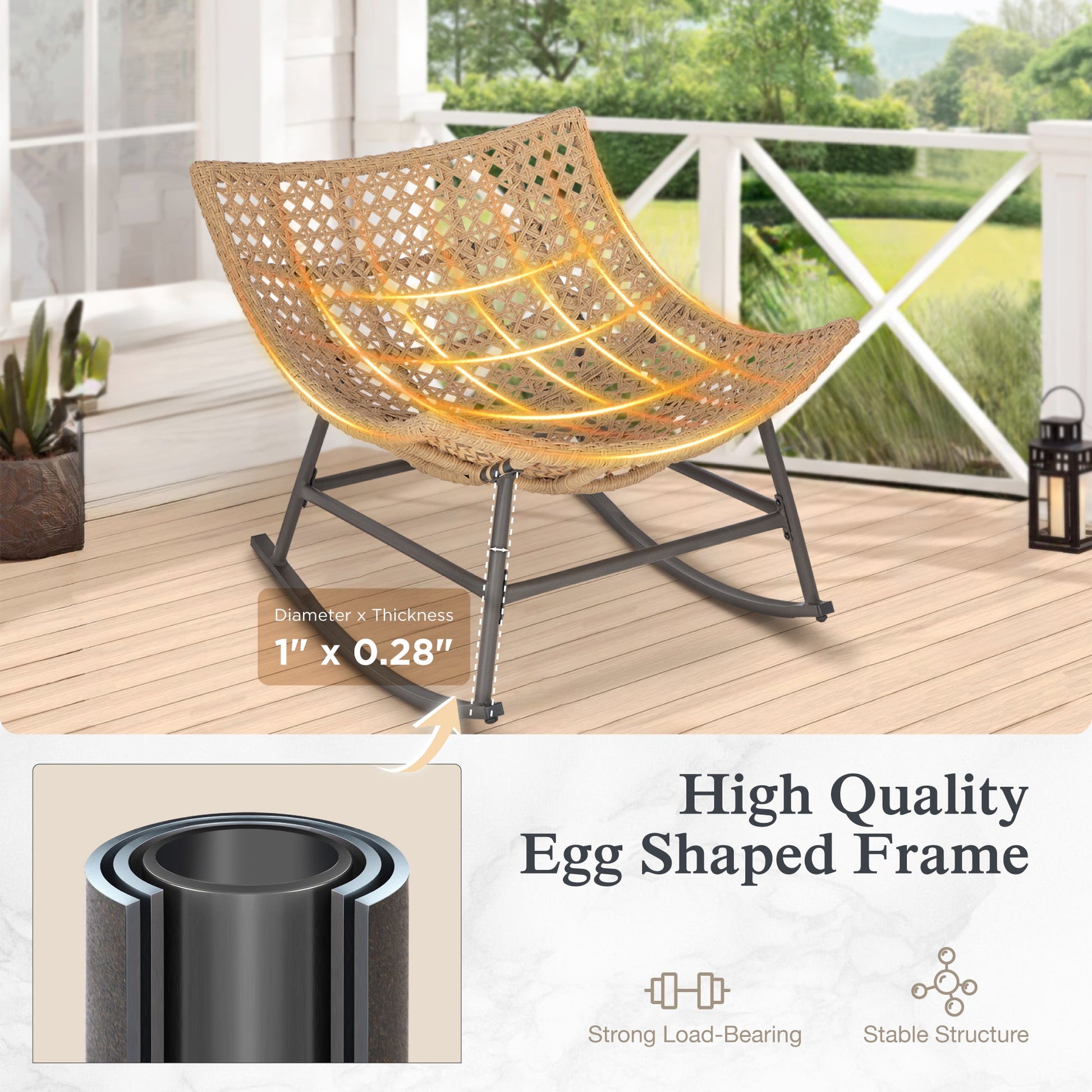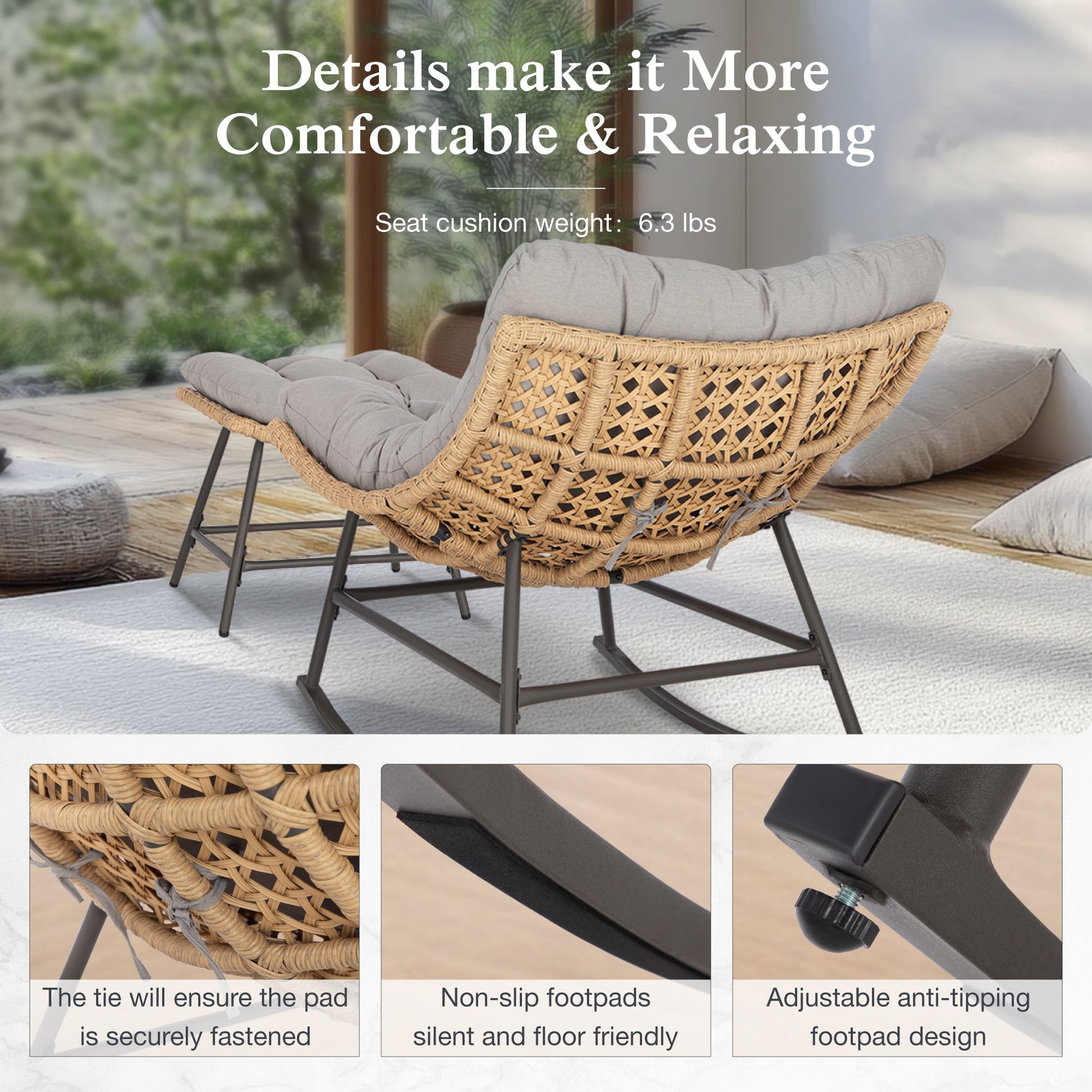 Alpha Joy 2 Pieces Rocking Papasan Egg Chair with Footstool, Grey