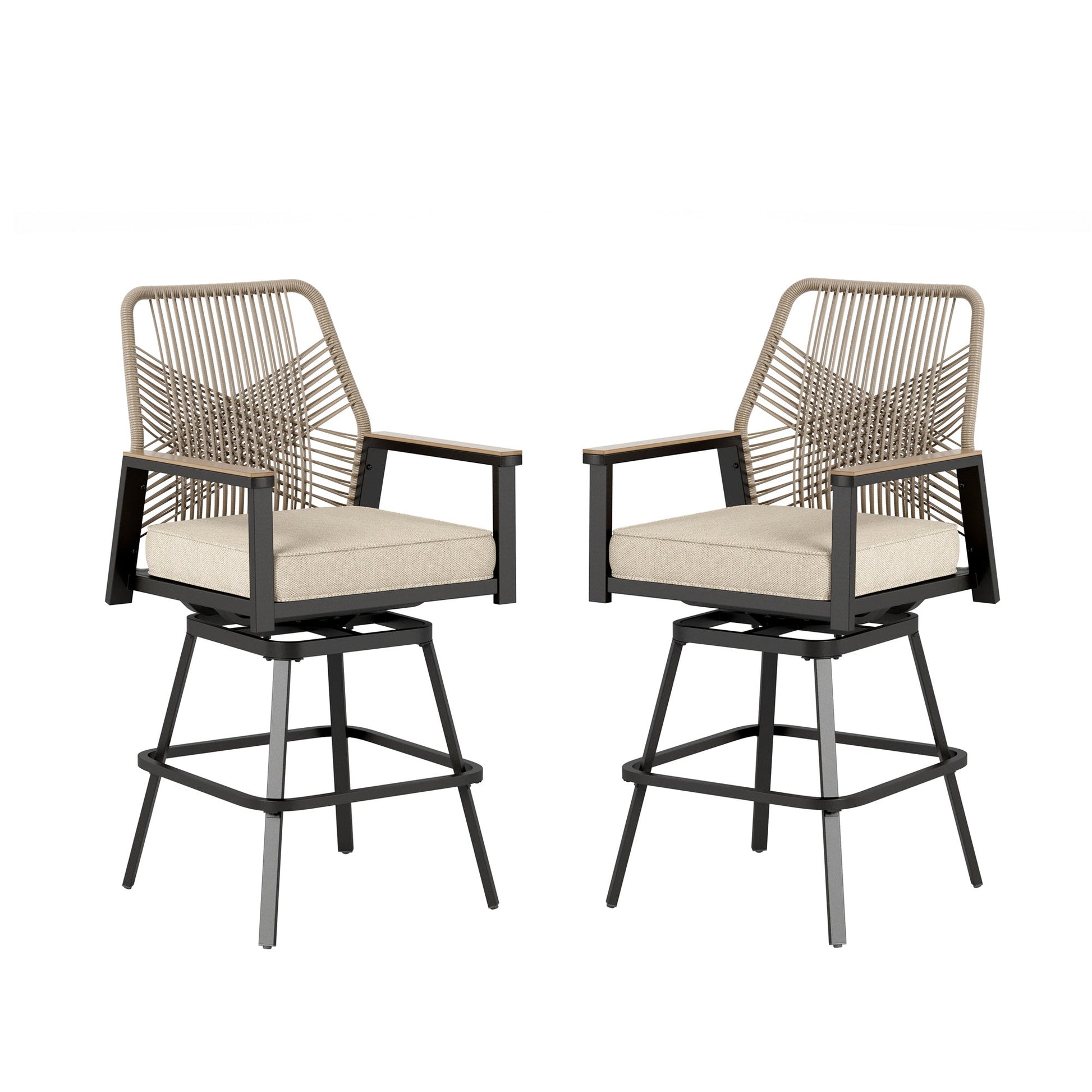 Transform your space with our contemporary bar stools, which showcase streamlined designs and exceptional comfort. Perfectly suited for any modern outdoor d¨¦cor, these chairs seamlessly combine style and functionality for an elegant appearance. The intricately woven rope back design adds a touch of charm, while the robust metal legs ensure durability against the elements. Experience cozy seating with thick, high-density cushions that maintain their shape, all protected by our CUSHION PRO technology. These rattan outdoor bar stools are both comfortable and resilient, supporting up to 300 lbs, making them perfect for gardens, patios, pools, deck, or kitchen counters.