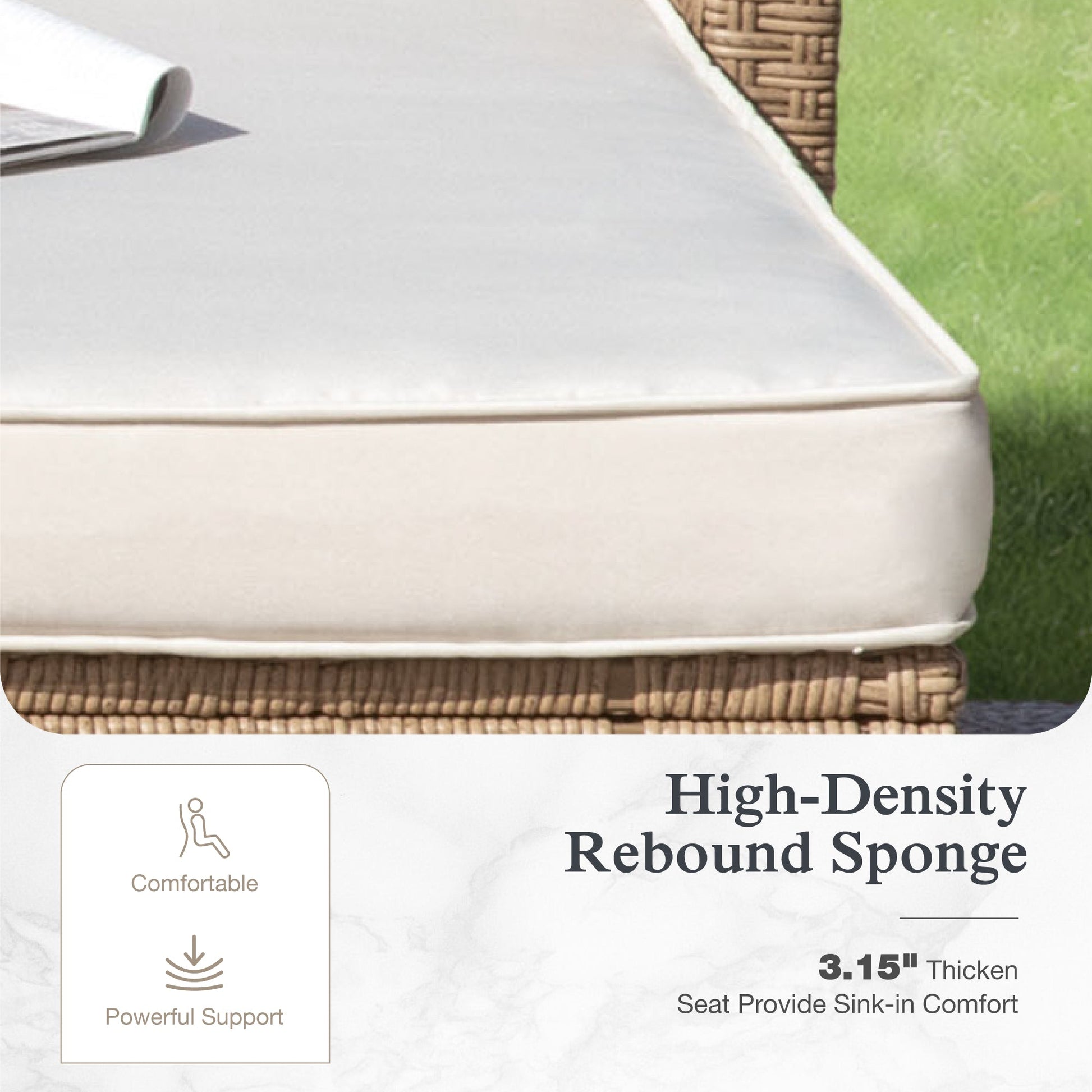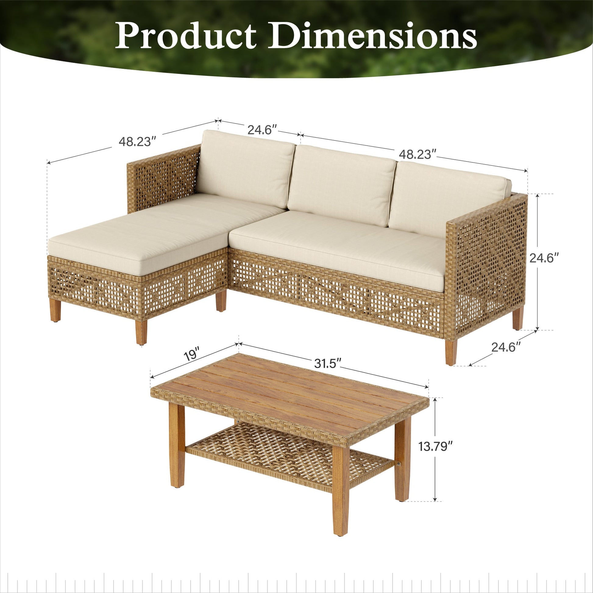 Alpha Joy Wicker Patio Furniture Conversation Set Boho Style Outdoor Sofa with Wood Coffee Table