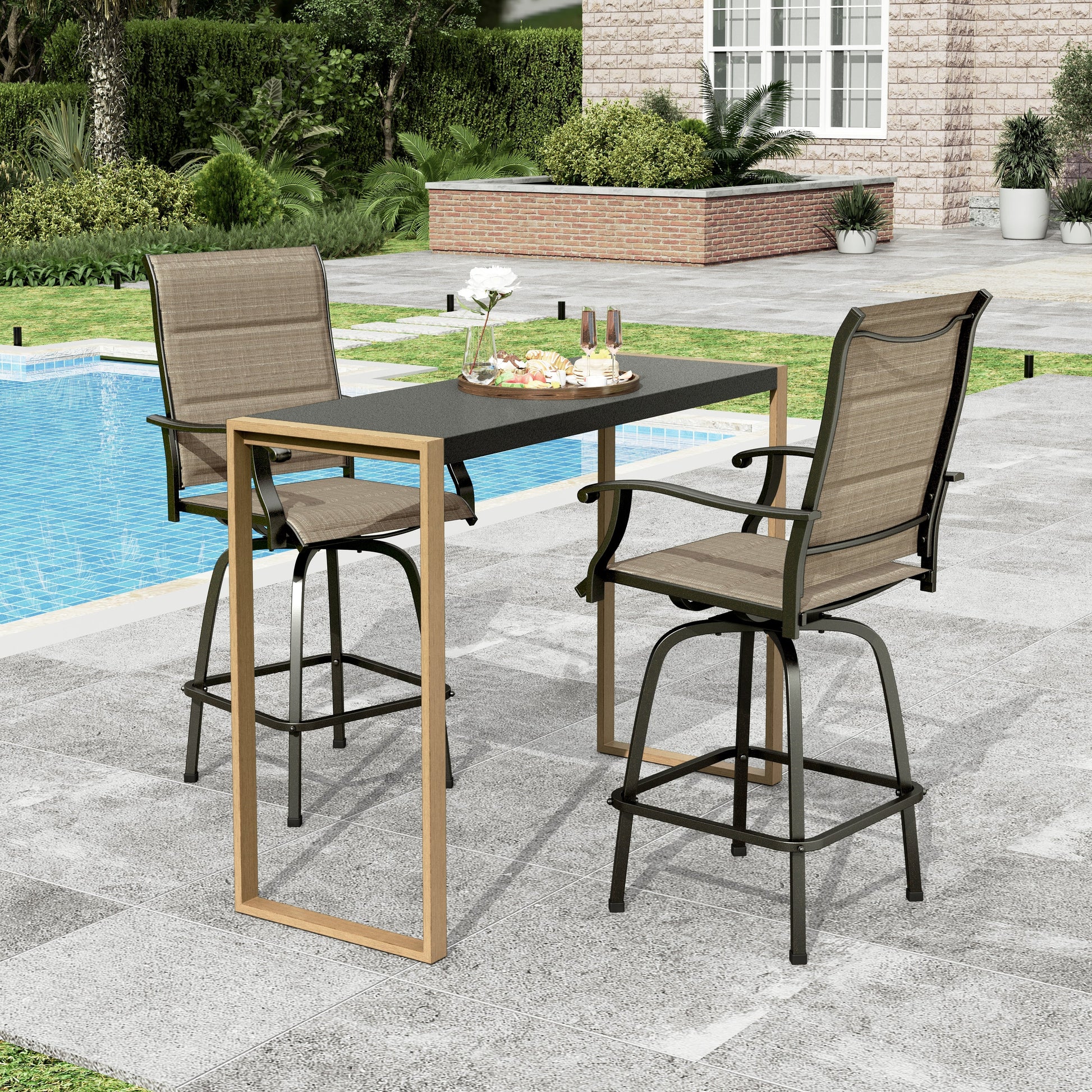 Sophia & William 3PCS Patio Outdoor Bar Set Padded Txtilene Bar Height Swivel Stools & Table Furniture Bistro Set, Brown