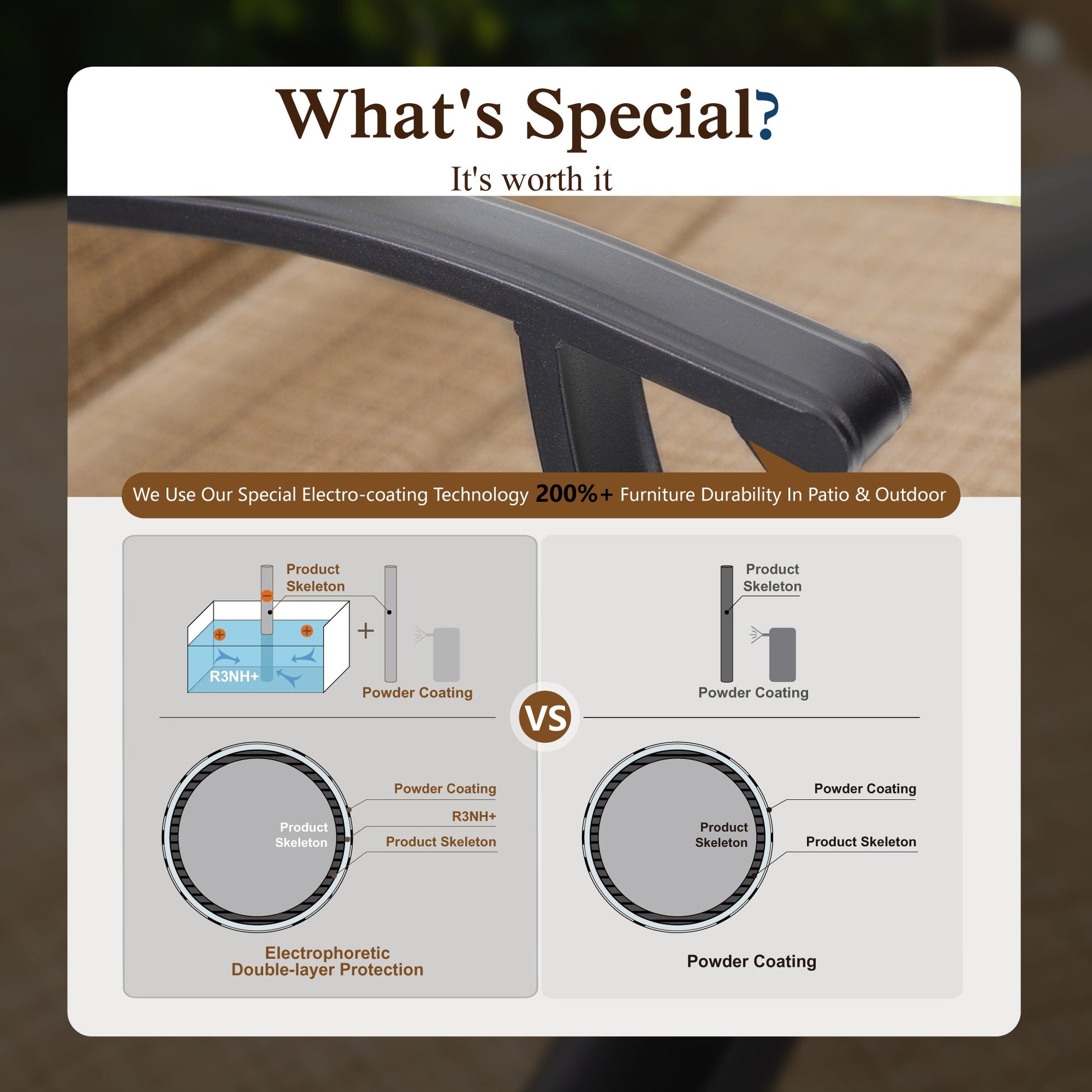 ¡¾Sturdy & Durable Material¡¿: Crafted with powder-coated steel frame and breathable sling fabric to ensure durability, rust resistance and weather resistance. Steel framed outdoor furniture has high intensity and heavier weight capacity, it does not change shape easily, featuring deformation resistant.