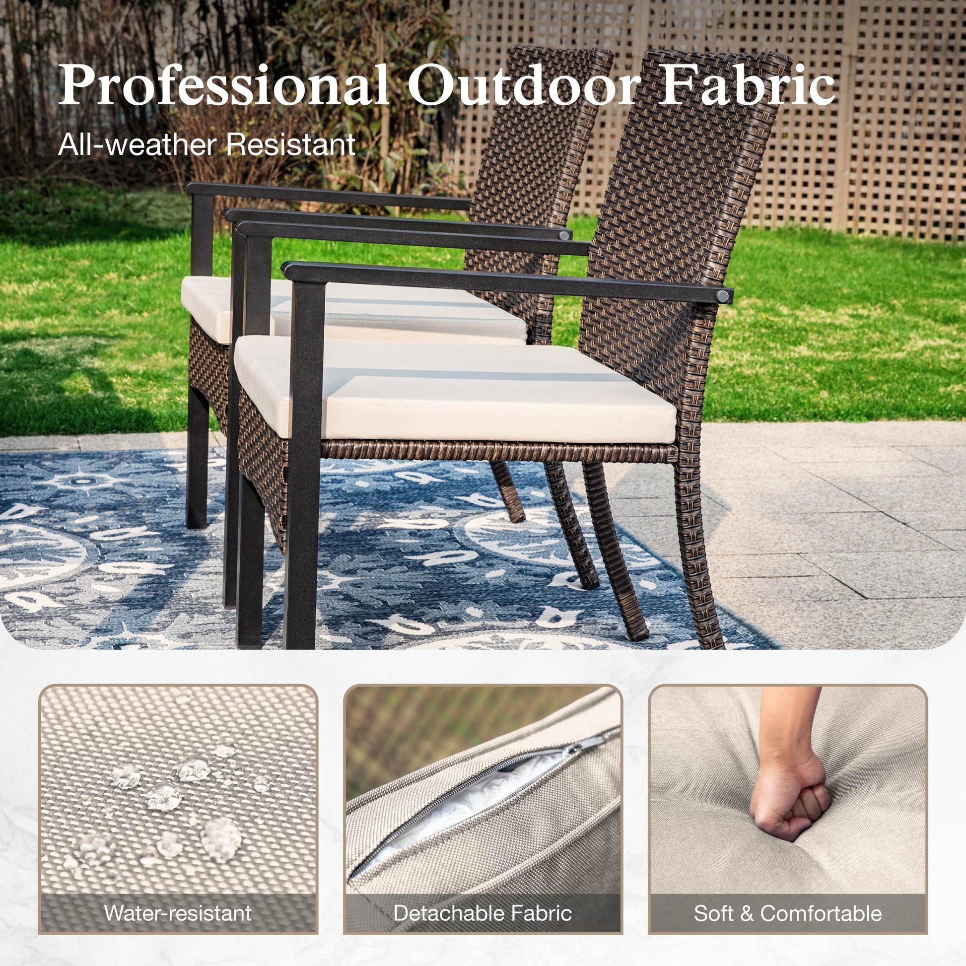 Alpha Joy 6-Piece Outdoor Patio Dining Set with 9ft Umbrella, Rattan Chairs & Square Table Set for 4, Red Umbrella