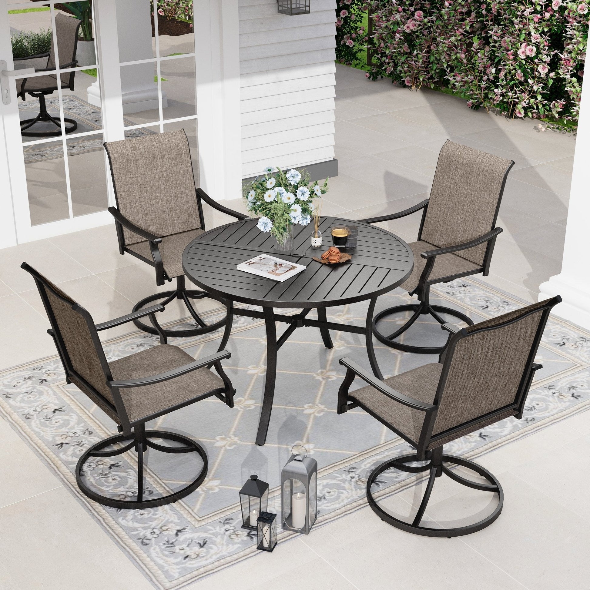 Sophia & William 5 Pieces Outdoor Patio Dining Set Swivel Textilene Chairs & 42'' Round Metal Table Set for 4