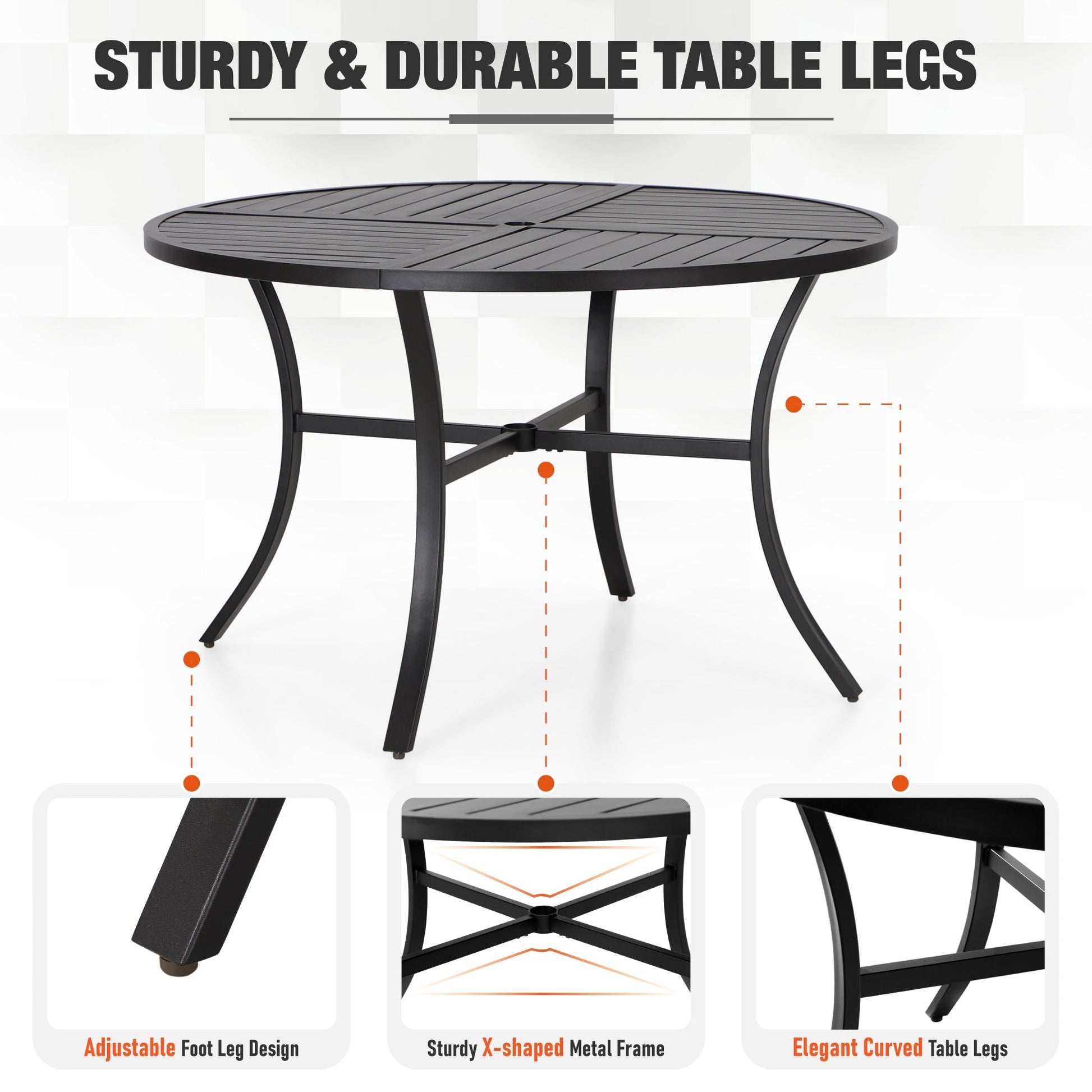 Sophia & William patio dining set can provide a relaxed and inviting atmosphere to any outdoor living space. Transform your outdoor space with our 5Pcs Patio Set, designed to offer style, comfort, and durability. This elegant set includes a round metal table and 4 cushioned fixed chairs, perfect for hosting family and friends.