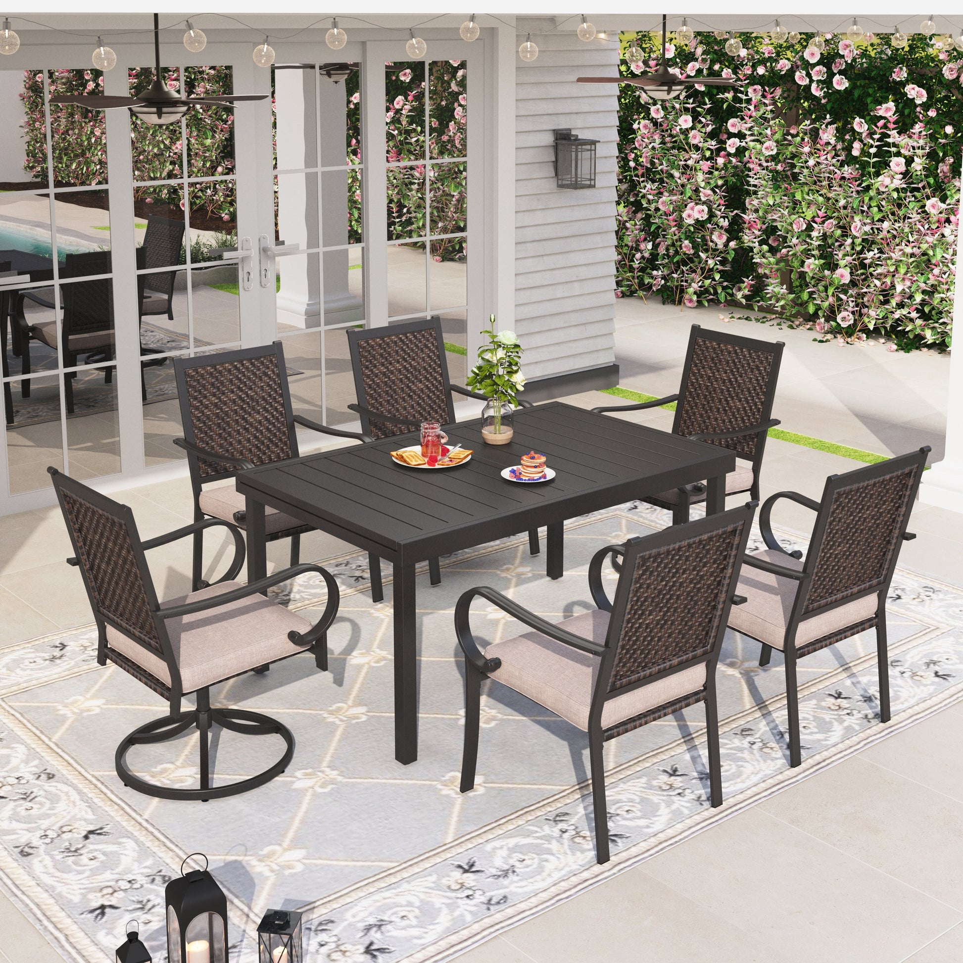 Sophia & William 7 Pieces Outdoor Patio Dining Set with Swivel & Fixed Wicker Chairs and Extendable Steel Table for 6-person