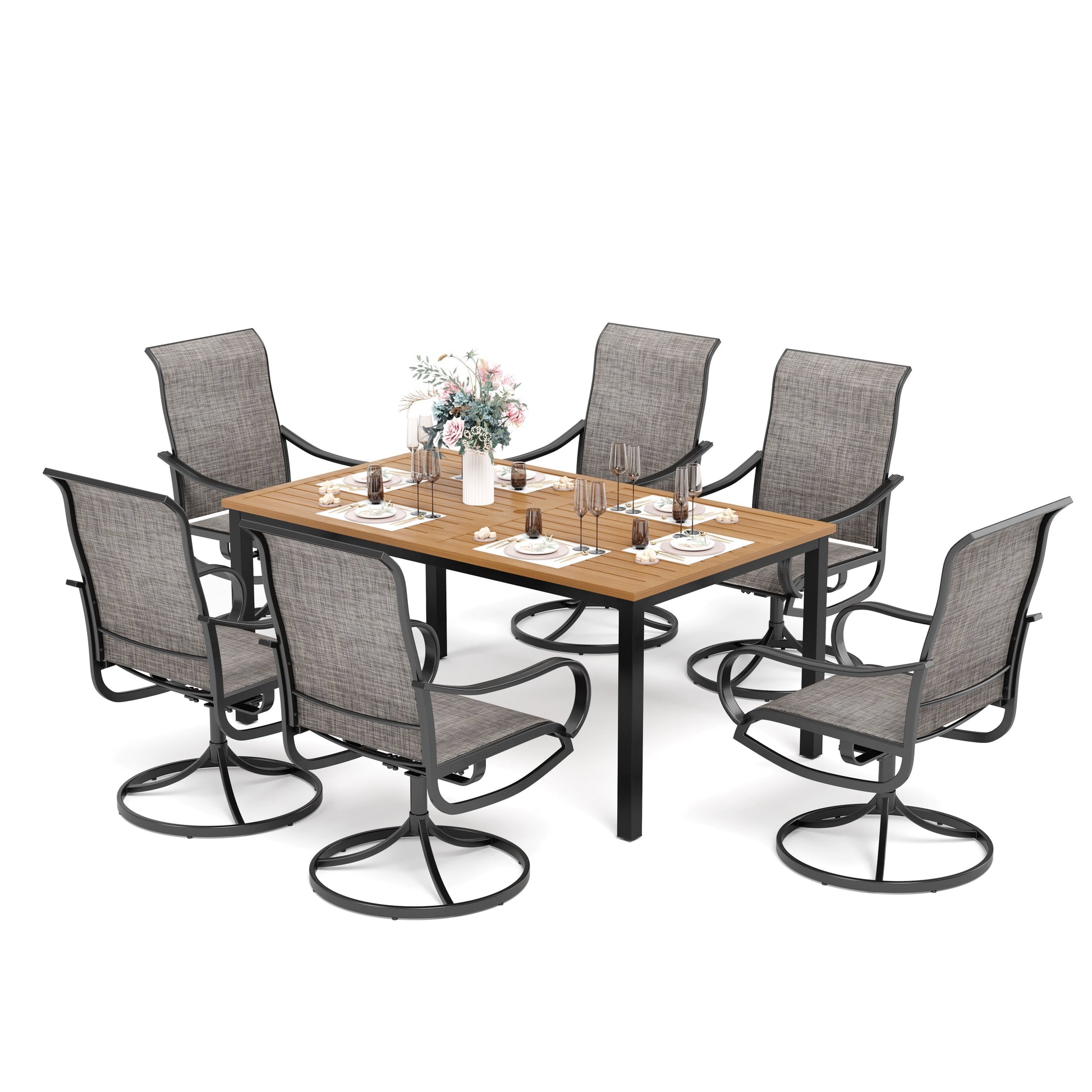 Sophia & William 7-Piece Outdoor Patio Dining Set Highback Textilene Chairs and Teak-grain Table Set