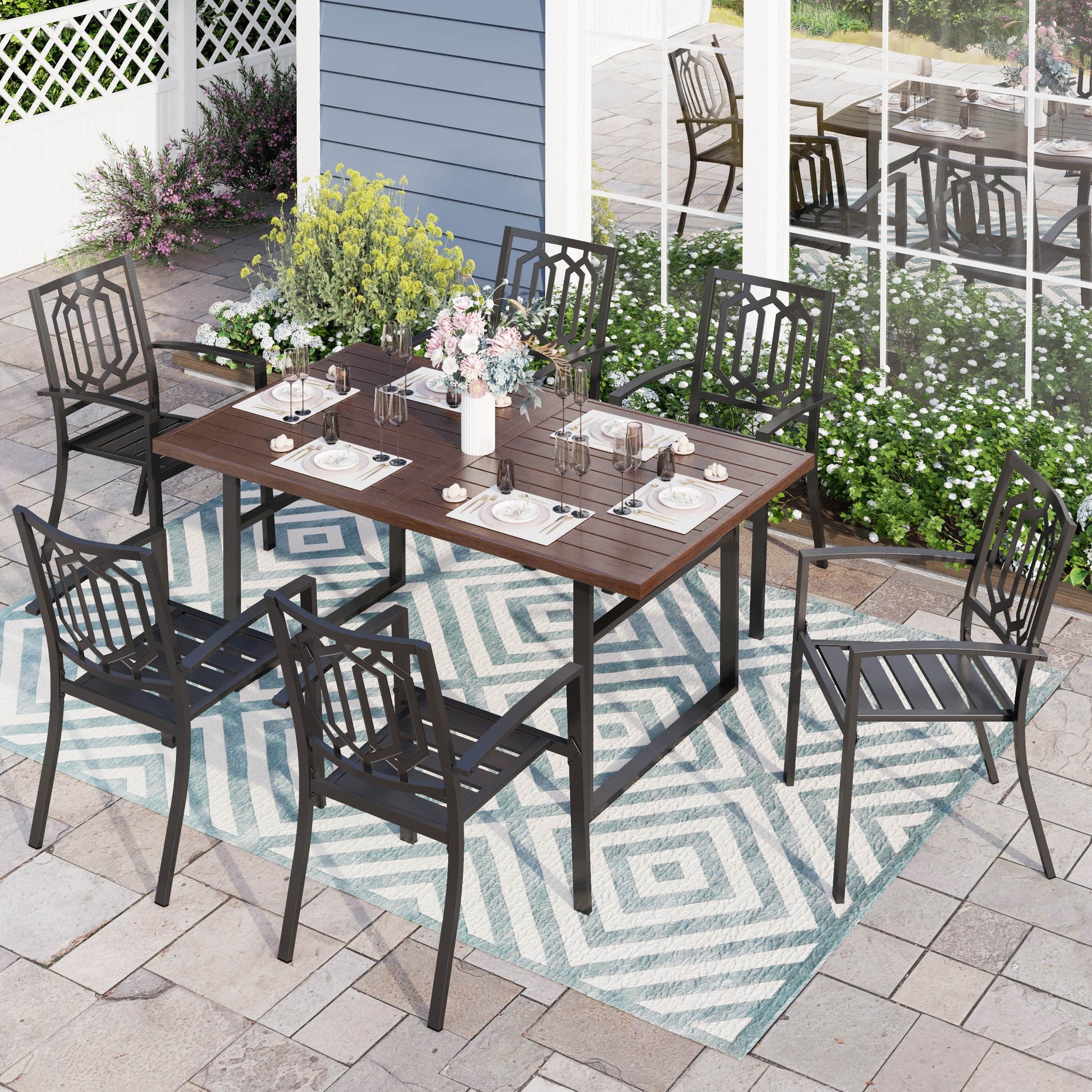 Sophia & William 7-Piece Outdoor Patio Dining Set Pattern Metal Chairs and Wood-grain Table Set