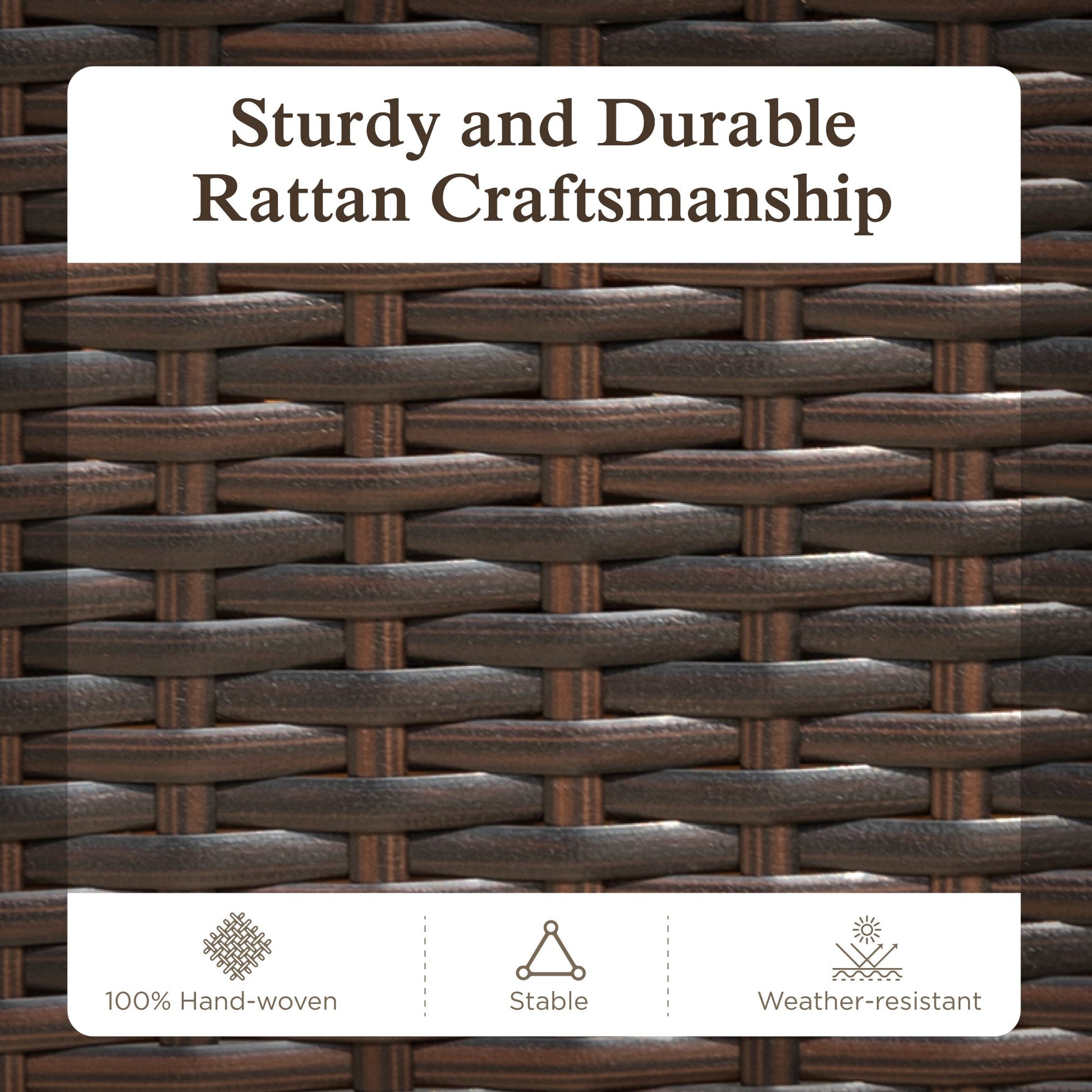 The cushioned wicker rattan chairs, made of tightly woven weather-resistant wicker for long-lasting use. Whether you're hosting a backyard barbecue or enjoying a quiet meal outdoors, this dining set is perfect for any occasion.