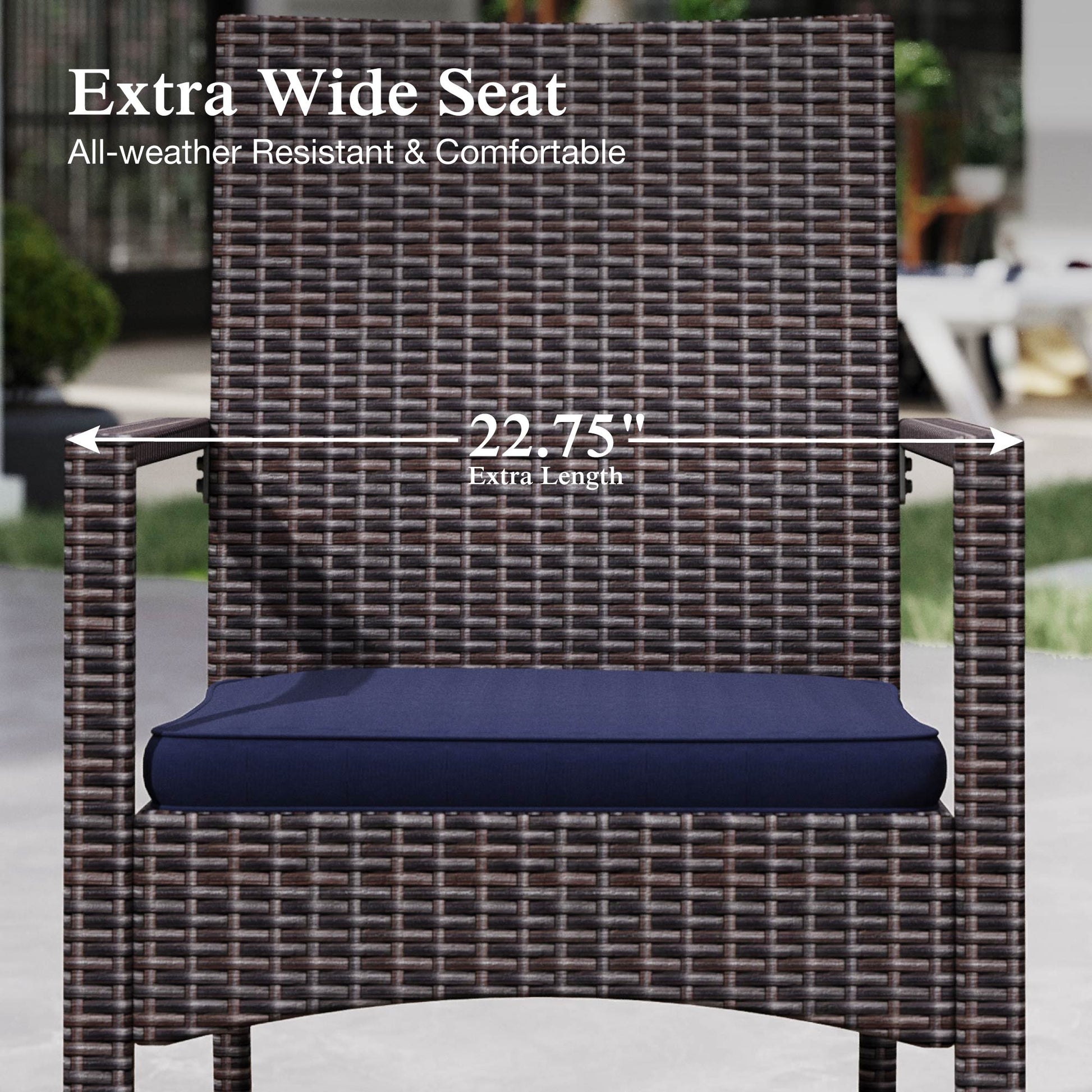 Alpha Joy 7-Piece Outdoor Patio Dining Set Wicker Rattan Chairs and Acacia Wood Table Set for 6 Person, Navy