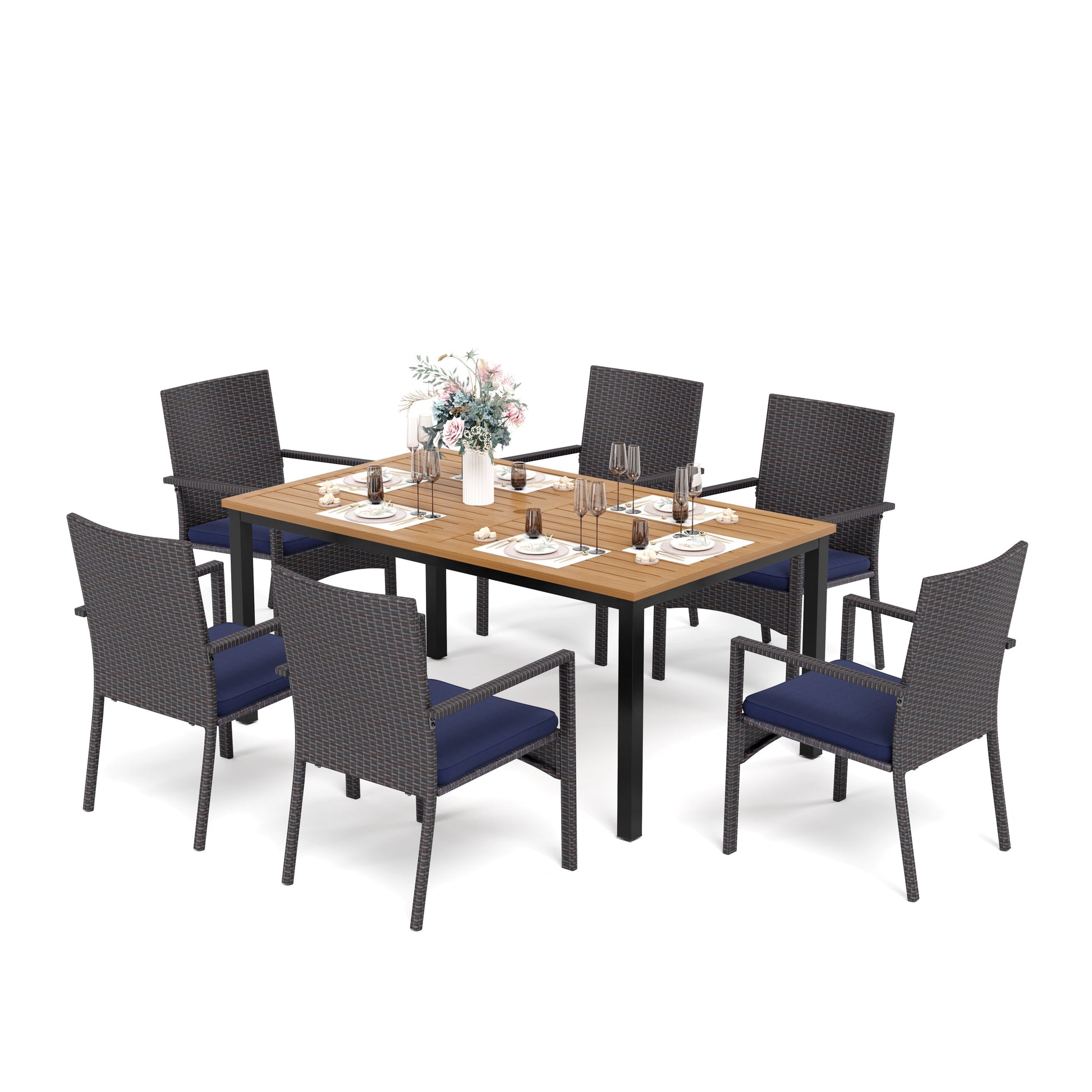 Sophia & William 7-Piece Outdoor Patio Dining Set Rattan Cushioned Chairs and Teak-grain Table Set