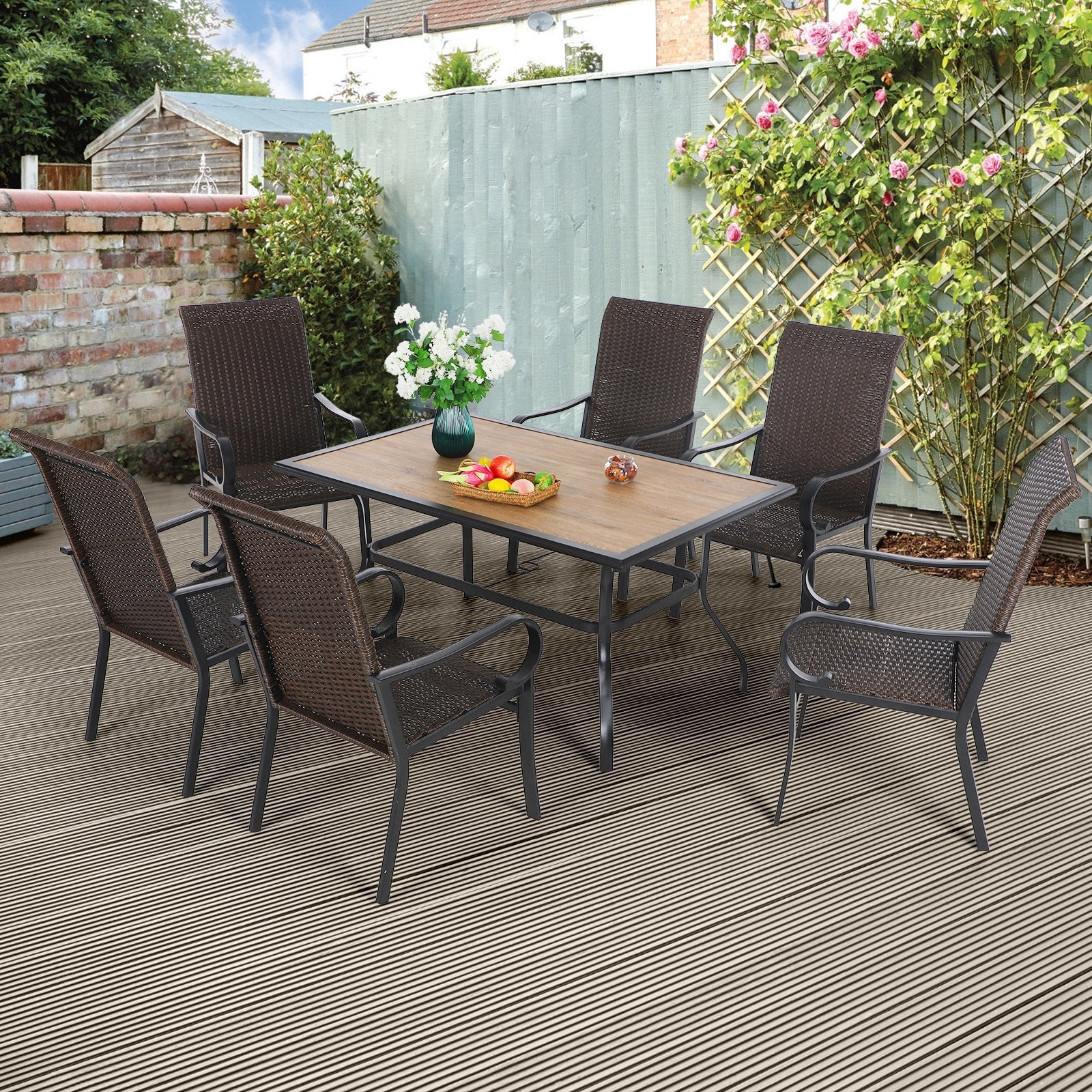 Sophia & William Outdoor Patio Dining Set, Included 6 Wicker Rattan Chairs and 1 Dining Table