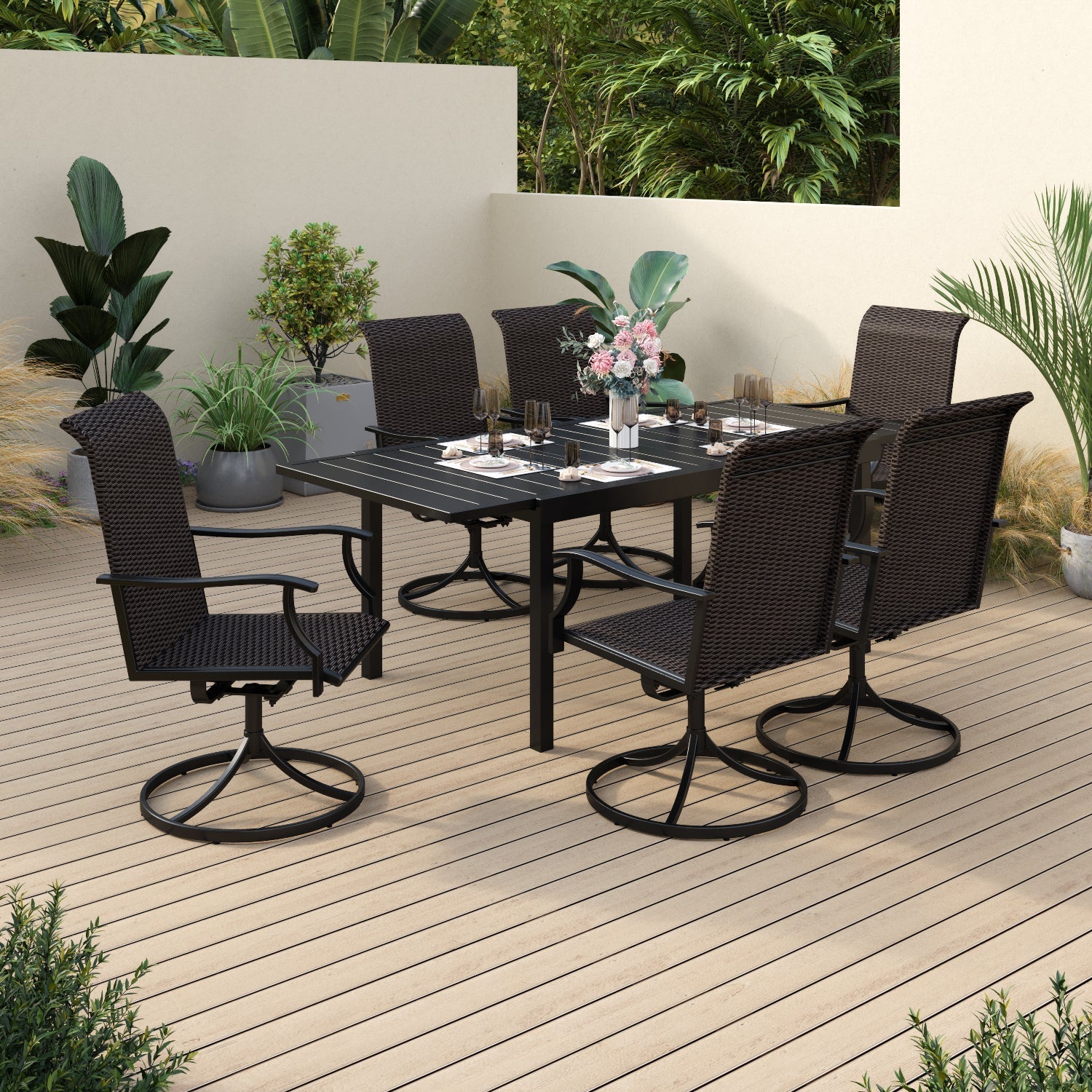 Sophia & William 7 Pieces Outdoor Patio Dining Set High Back Swivel Dining Chairs and Metal Dining Table with Umbrella Hole