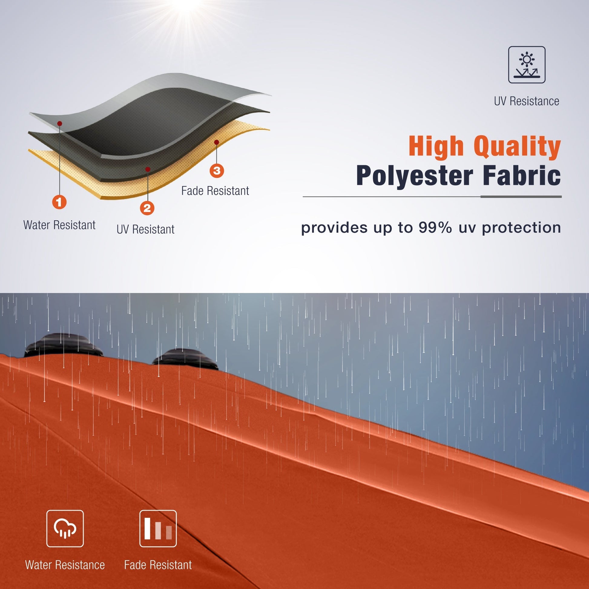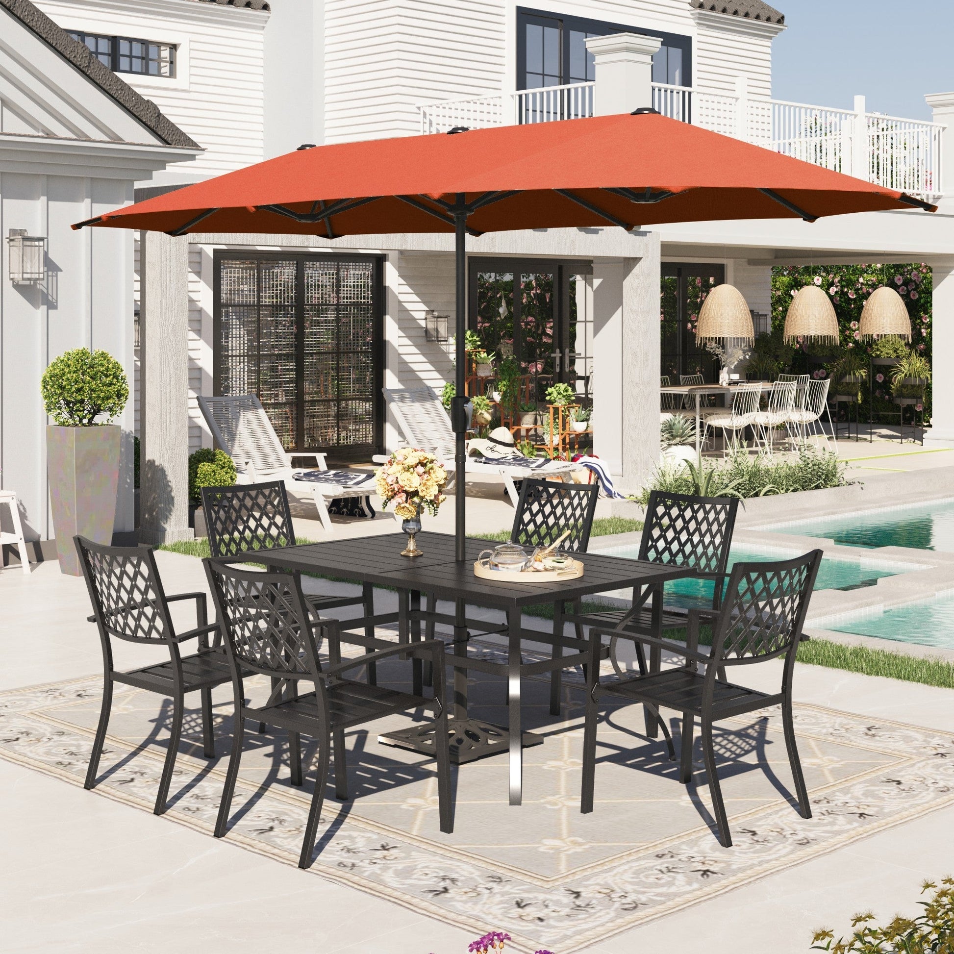Sophia & William 8-Piece Outdoor Dining Set with 13 ft Orange Red Umbrella, Rectangle Table & Metal Chairs for 6