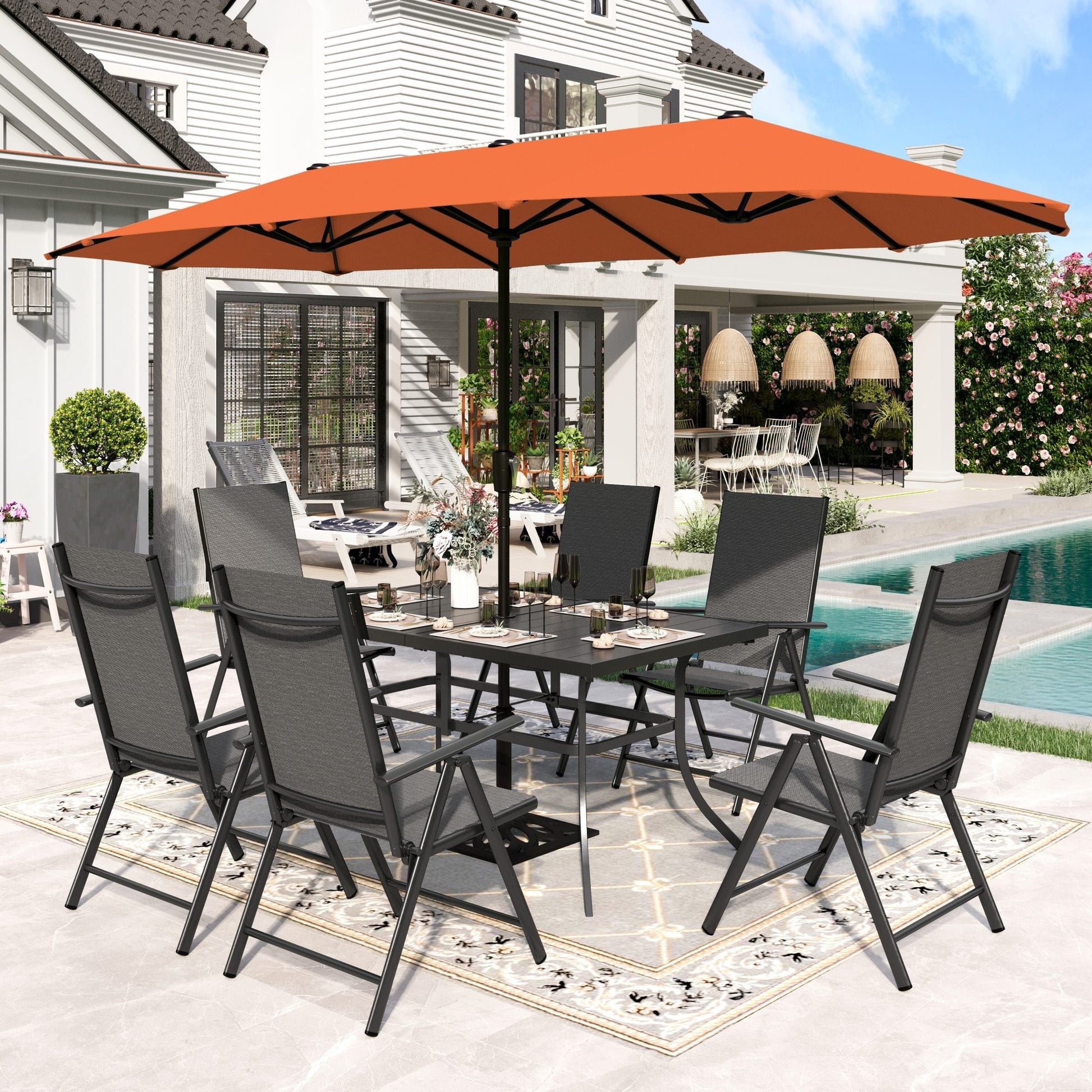 Sophia & William 8-Piece Outdoor Patio Dining Set with 13ft Umbrella, Adjustable Folding Chairs & Rectangle Table for 6, Red