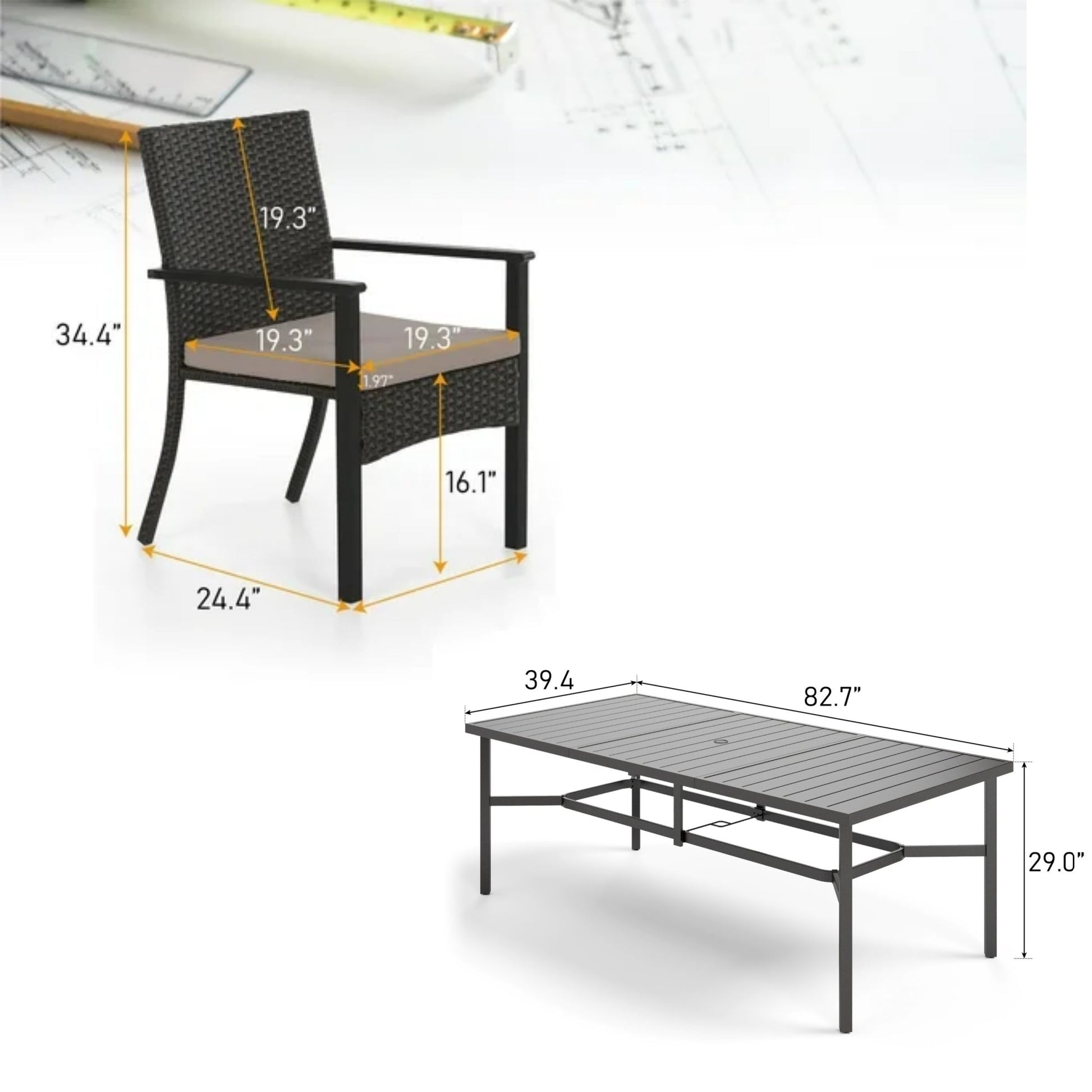 Sophia & William 9-Piece Outdoor Patio Dining Set Metal Table and Rattan Chairs Set for 8, Black & Beige