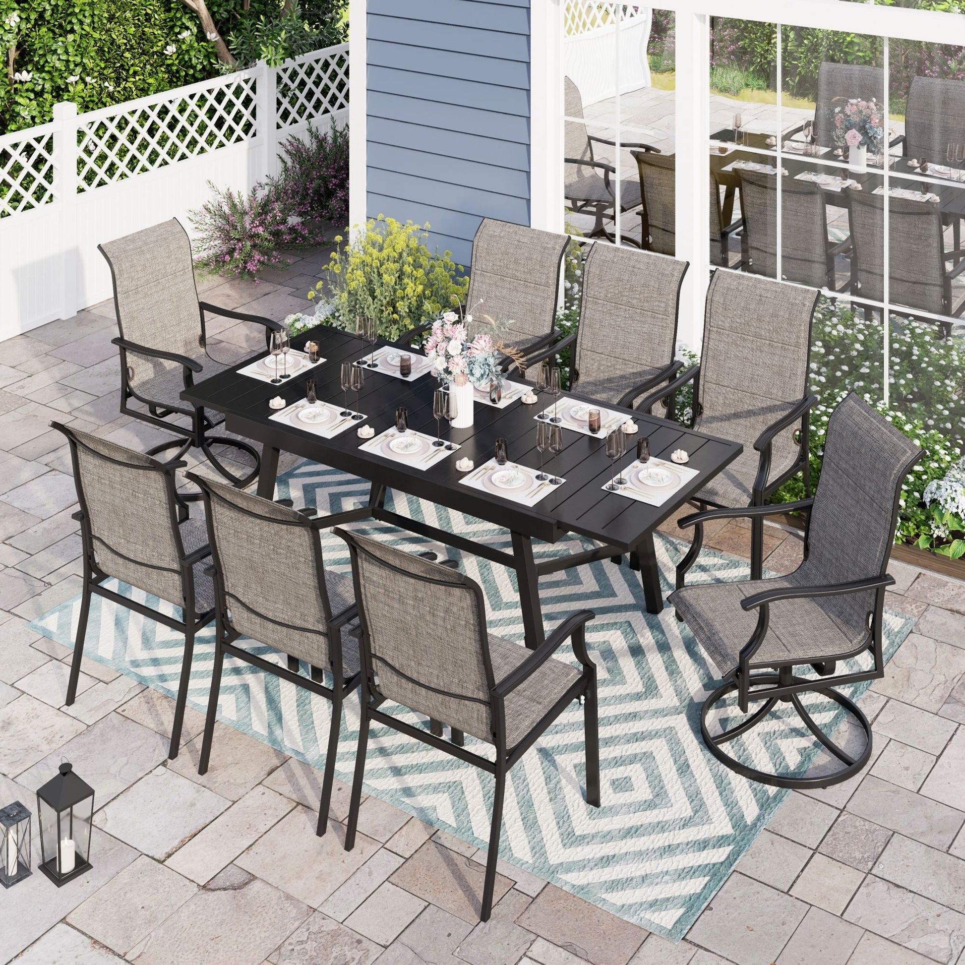 Sophia & William 9 Pieces Metal Outdoor Patio Dining Set with Gray Padded Textilene Chairs and Black Extendable Table