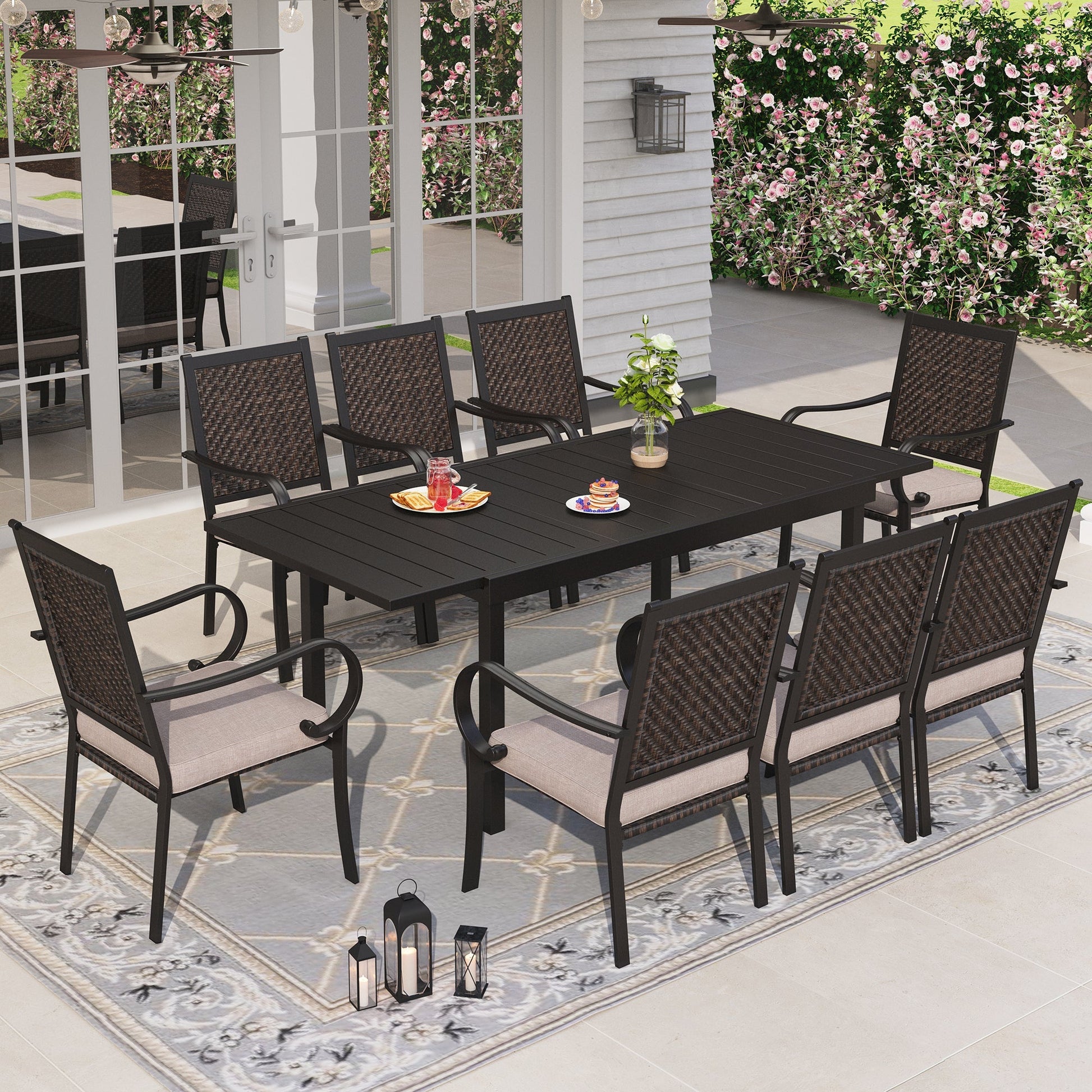 Sophia & William 9 Pieces Outdoor Patio Dining Set with Wicker Rattan Chairs and Extendable Metal Table for 8-person