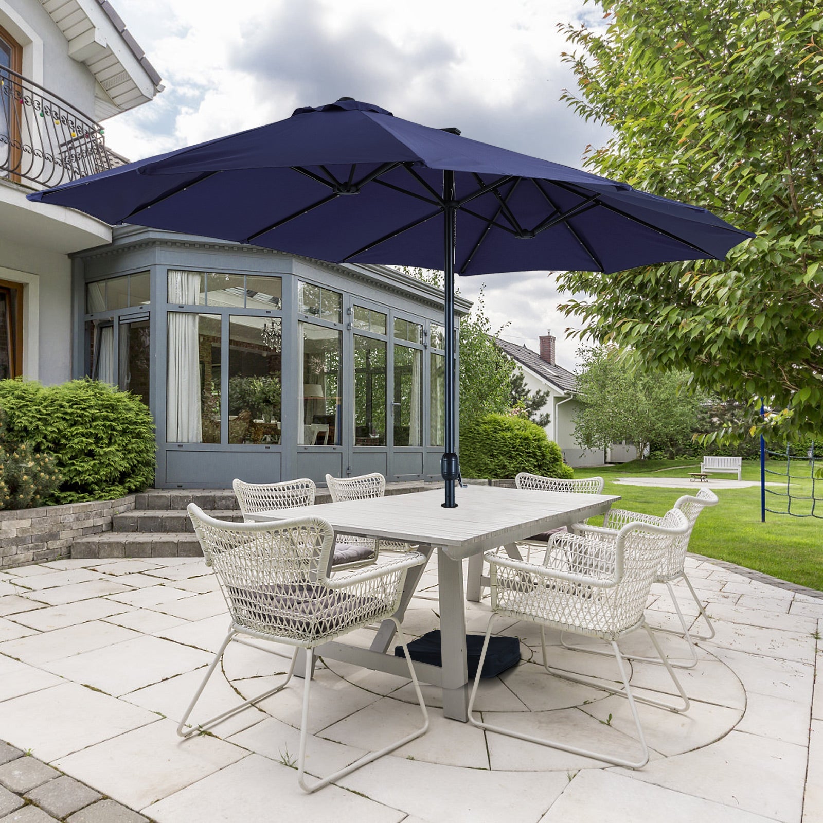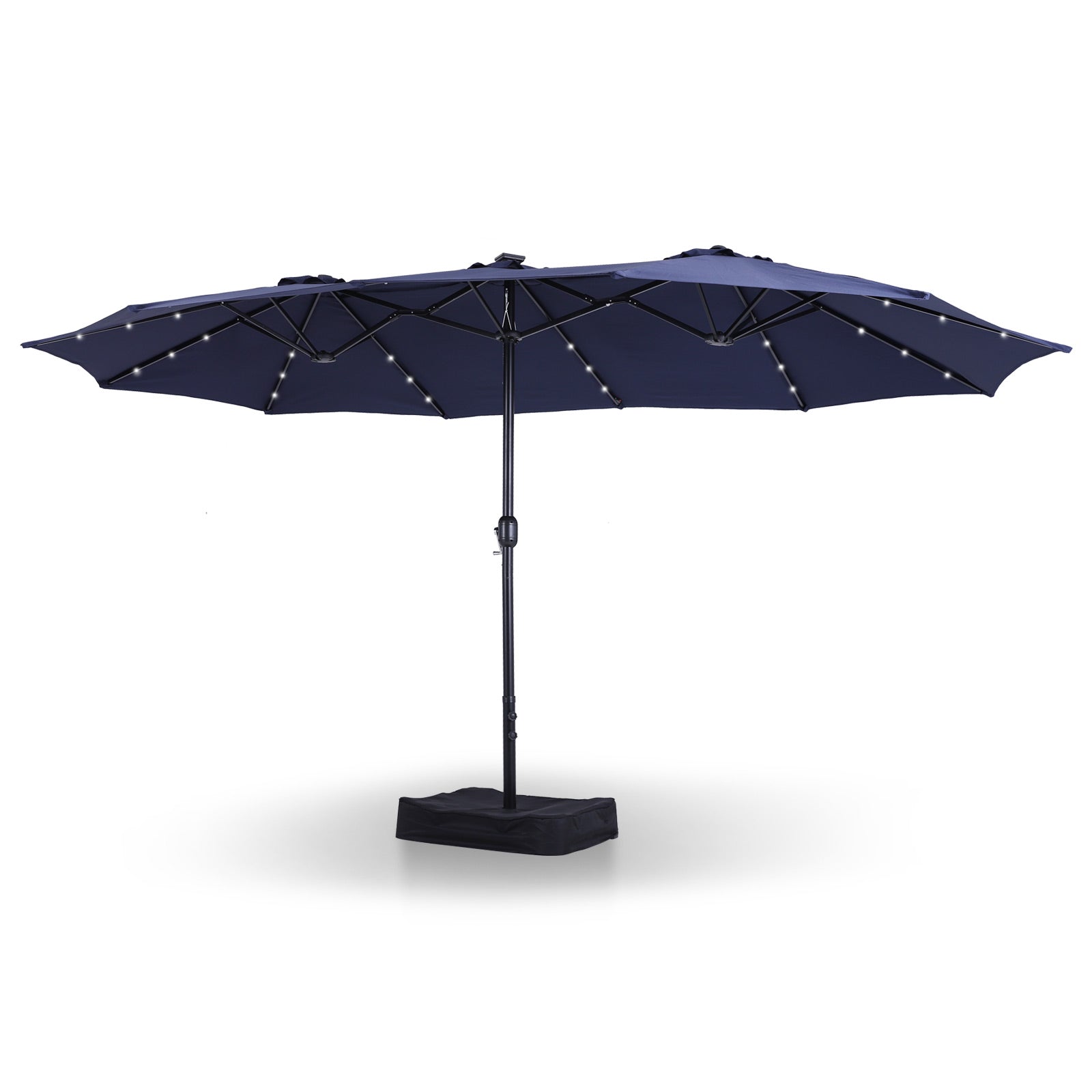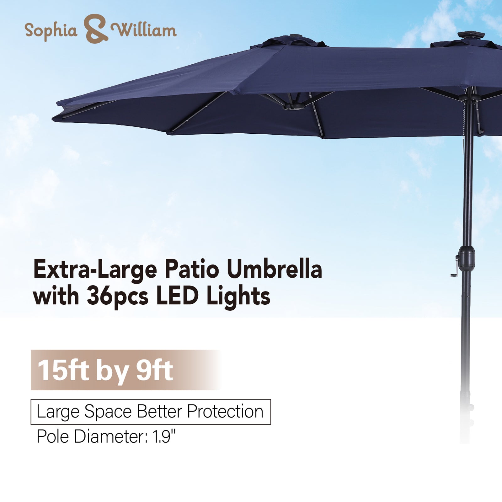 Sophia & William 15ft Patio Umbrella with Lights (Base Included), Extra Large Outdoor Double-sided Umbrella, Navy