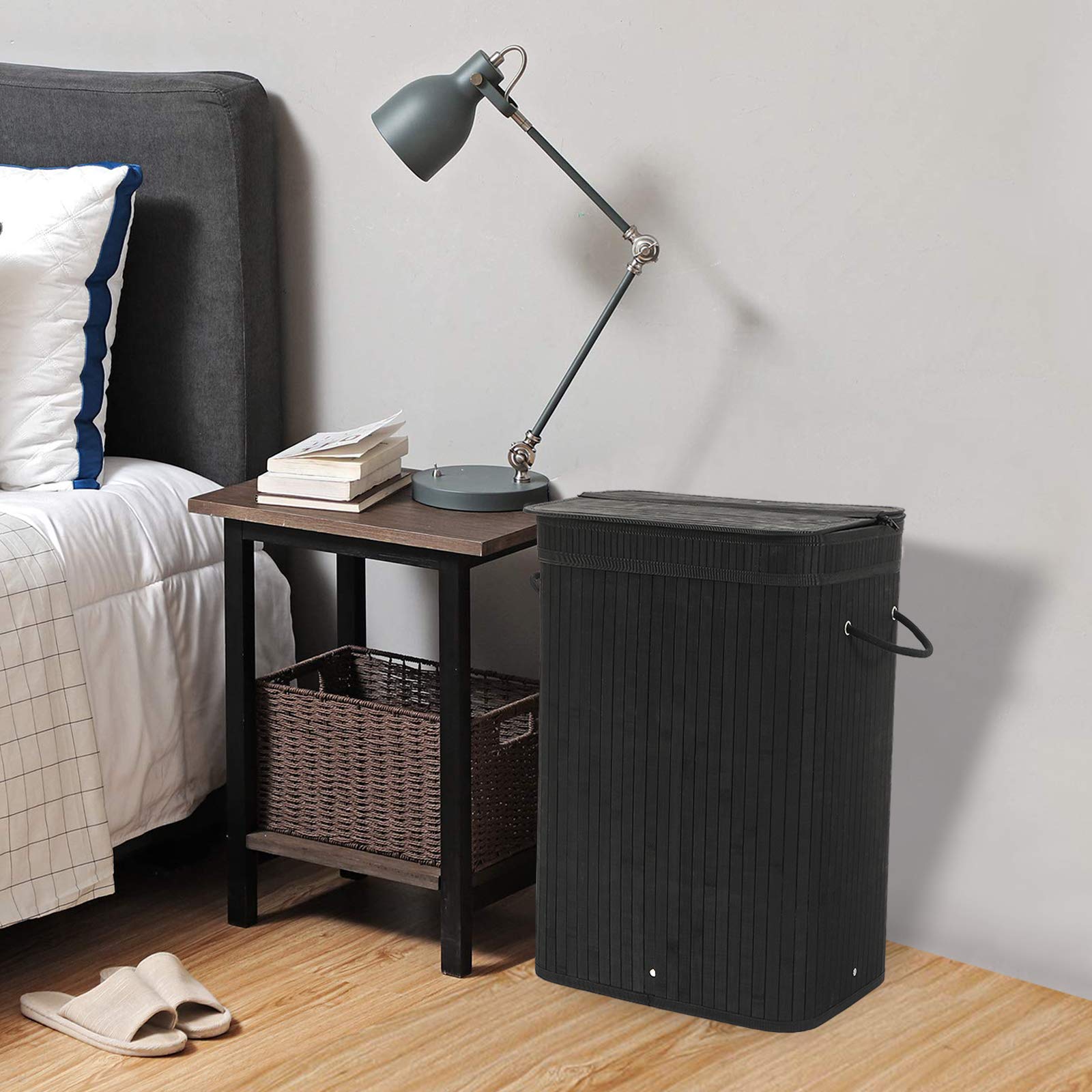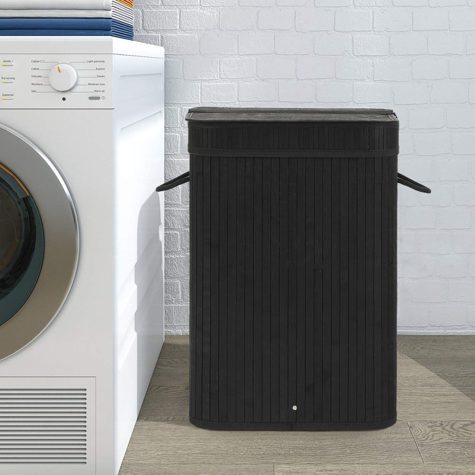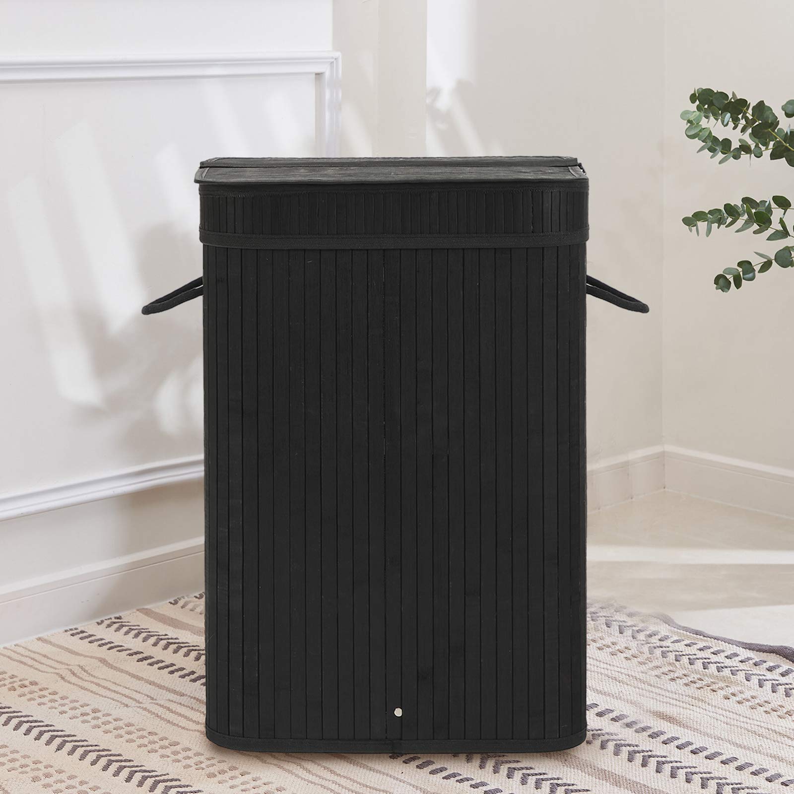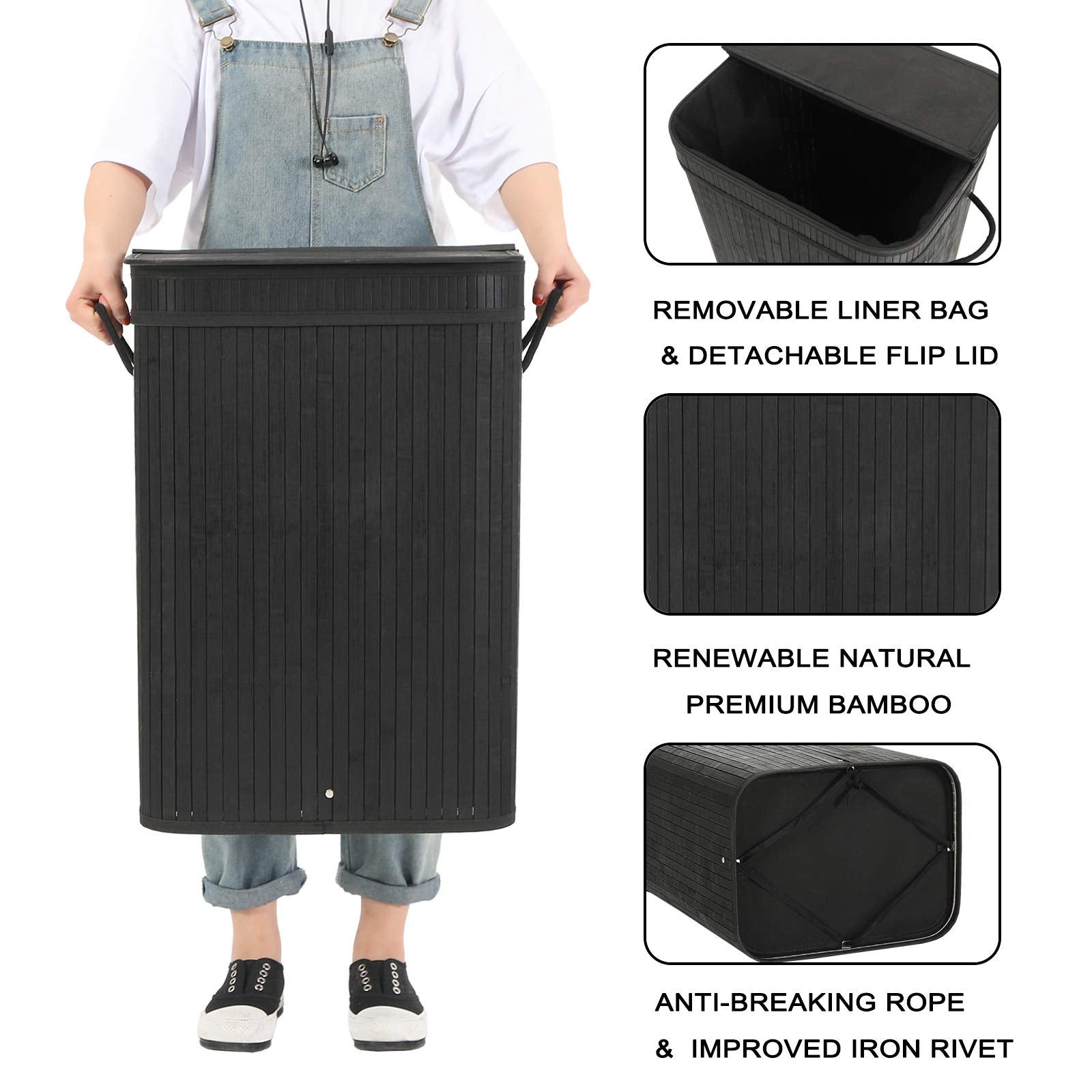 Sophia & William Laundry Hamper with Lid, 72L Bamboo Laundry Basket with Removable Liner, Collapsible Storage Dirty Clothes Basket with Handles for Laundry Bedroom, Black