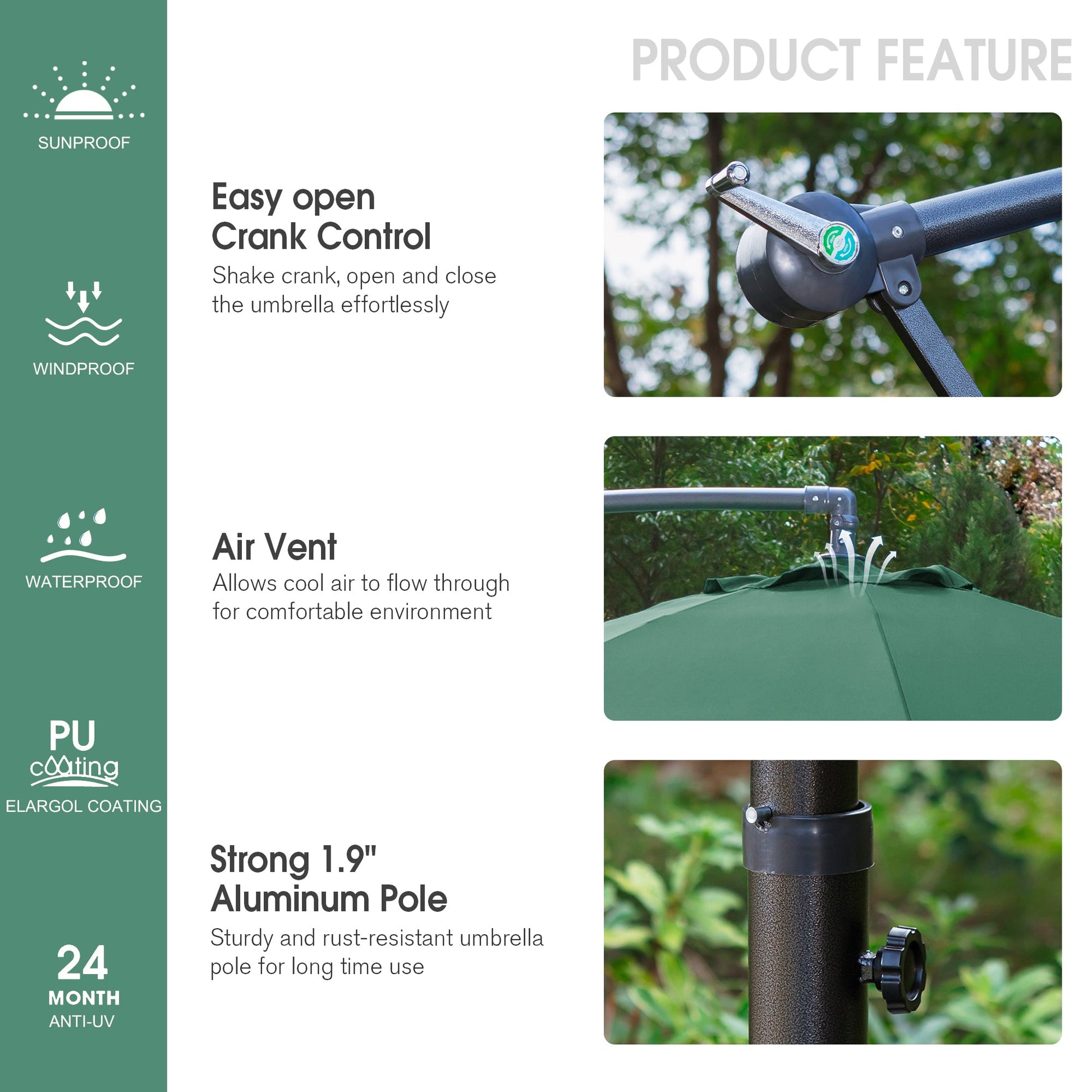 Sophia & William Patio Umbrella 9ft Outdoor Offset Umbrella Cantilever Umbrella with Fringe Tassel Easy Lift UV Protection Outdoor Umbrella Aluminum Ploe All Weather for Backyard Pool Garden Green