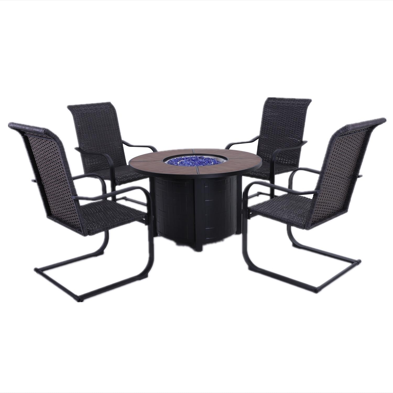 Sophia & William 5 PCS Patio Dinning Set with 50,000 BTU Gas Fire Pit Table and 4 Rattan C-spring Chairs