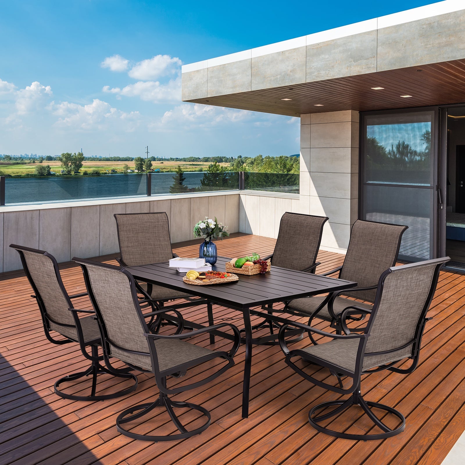 Sophia & William 7 Piece Metal Outdoor Patio Dining Set Outdoor Furniture Set with 1 Steel Rectangular Table & 6 Textilene Swivel Chairs, Black